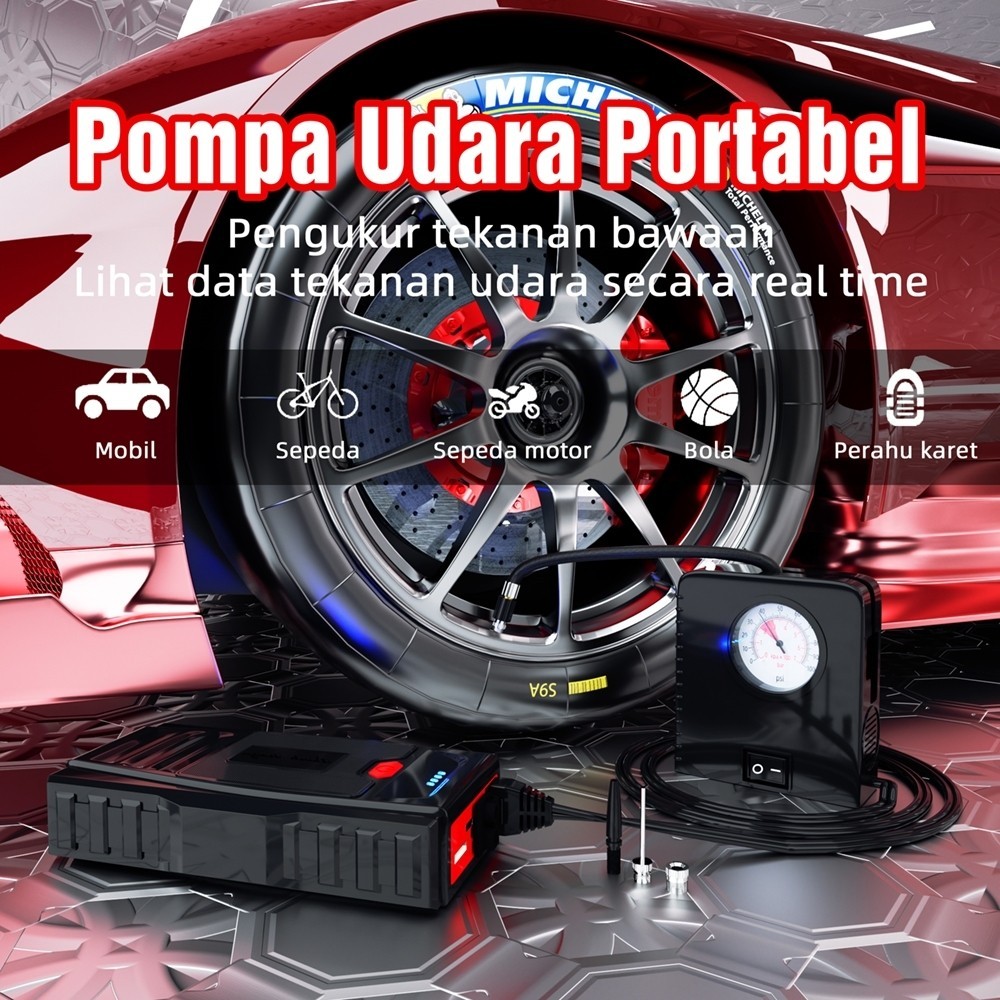 【】JUMPER AKI MOBIL POWERBANK HIGH POWER POMPA BAN PORTABLE MOTOR POWER BANK 3 IN 1 USB12V 4 PORT LED BATTERY