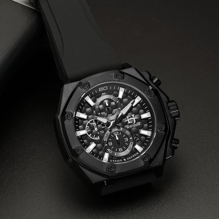 [ DISKON ] EVANS JAYDEN JAM TANGAN PRIA 9586 RUBBER KACA SAPPHIRE CHRONO 10ATM