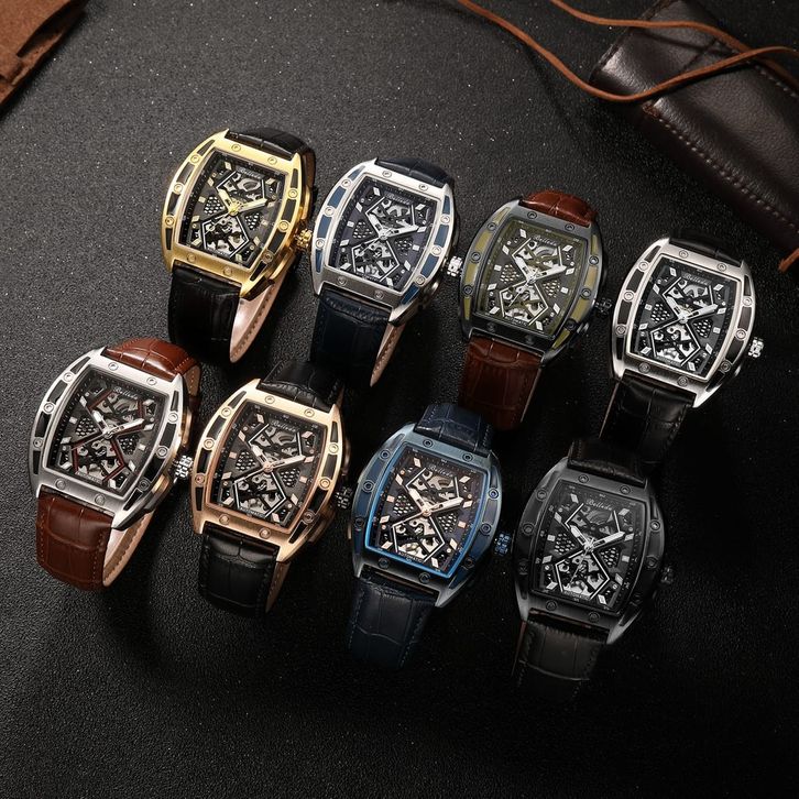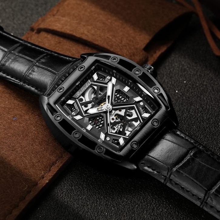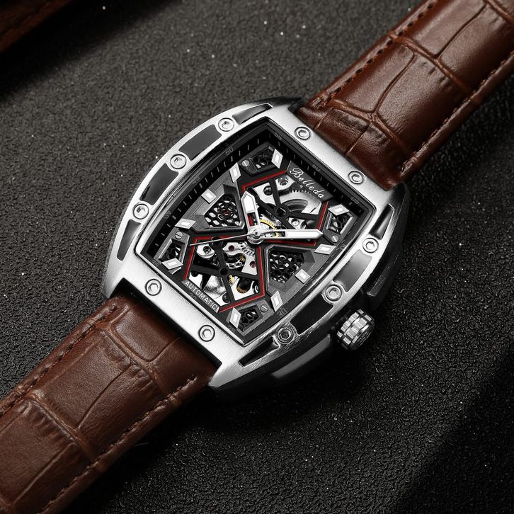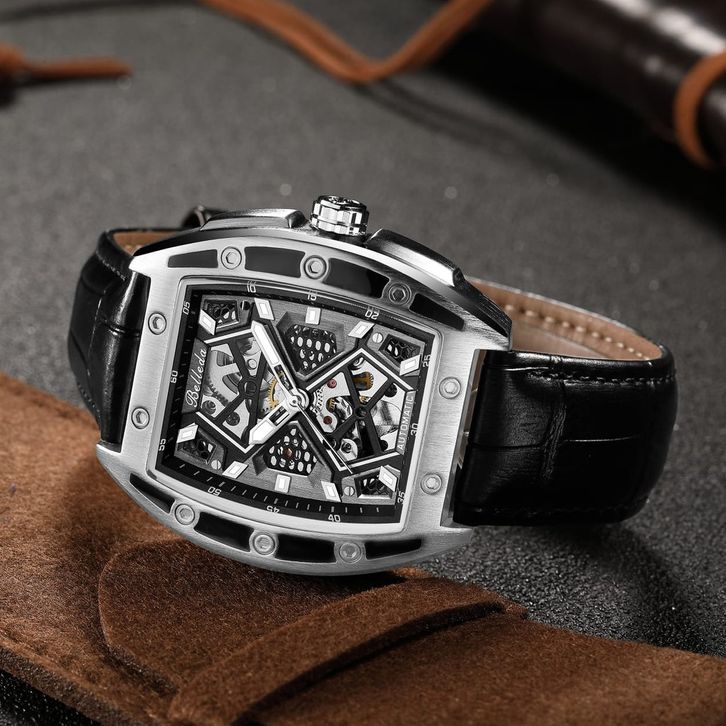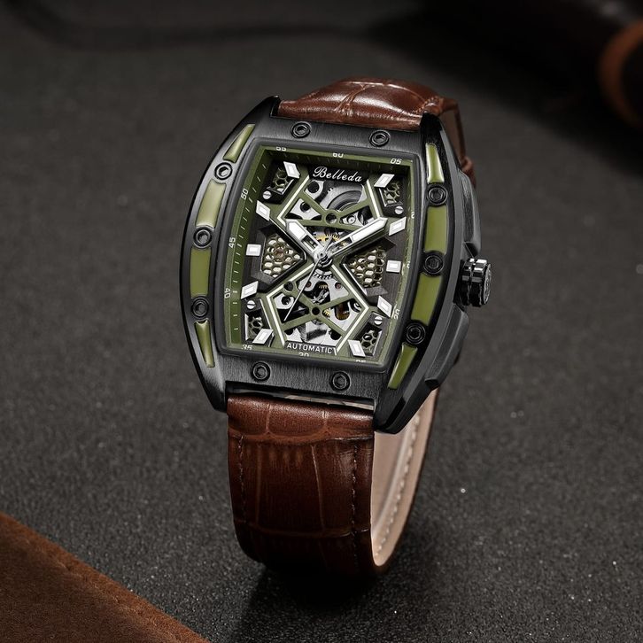 JAM TANGAN PRIA BELLEDA 9642 AUTOMATIC KULIT – FASHION MEWAH, ANTI AIR 50M, ORIGINAL + BONUS JAM