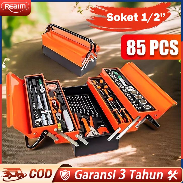 Tool Kit 85 Pcs Alat Bengkel Tool Kit Kunci Sok Set Pekerjaan Otomotif Pekerjaan Mobil Hand Toolset / Tool Kit Set / To