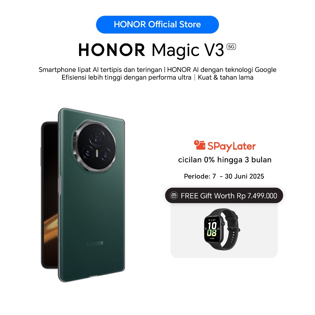 HP HONOR Magic V3 (12/512GB) 50 MP (Kamera Utama) 20 MP (Kamera Selfie) | LTPO AMOLED 120Hz | 5150 mAh 66W Wired