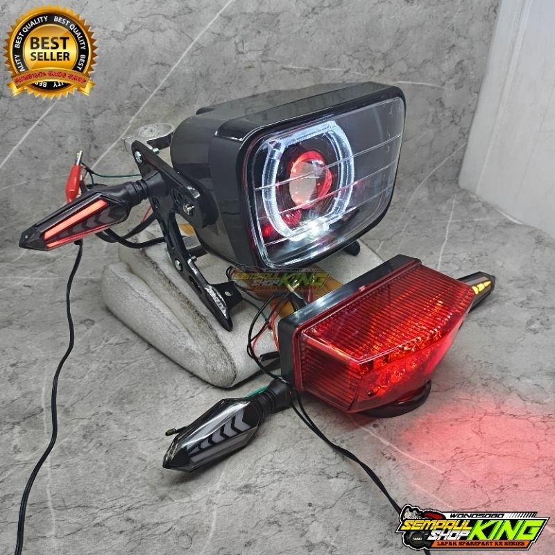 1 Paket Lampu Rx king Biled Albed Minimalis Fullblack Plus Breket Dan Sein 4pcs