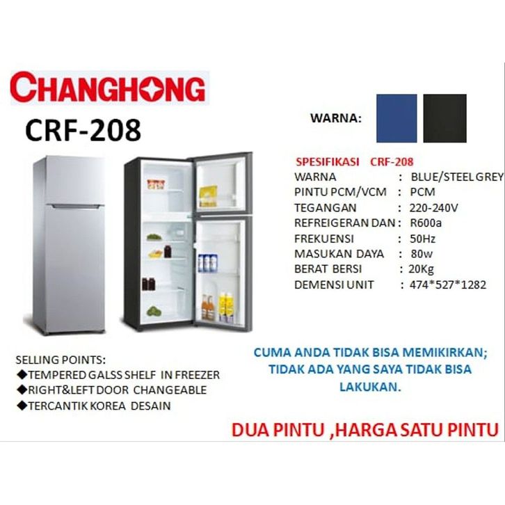 CHANGHONG CRF208 Kulkas Lemari Es 2 Pintu - CRF 208 Low Watt (165L)