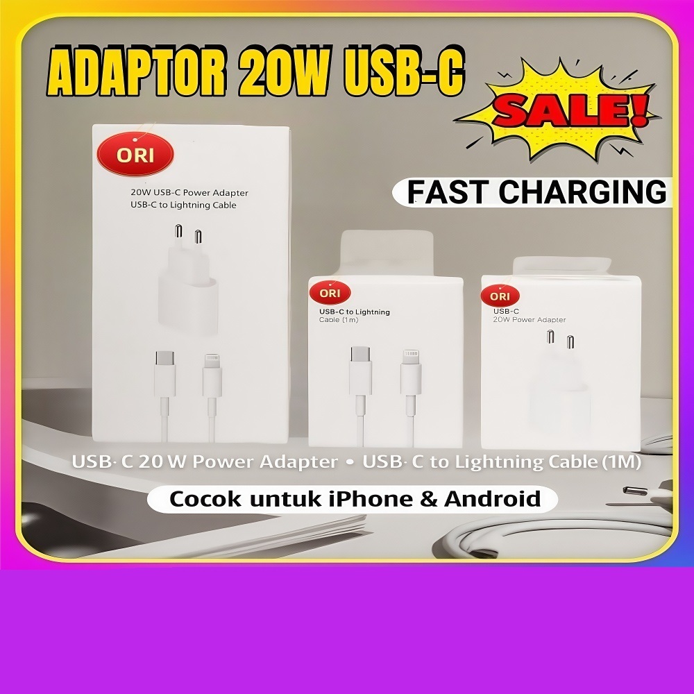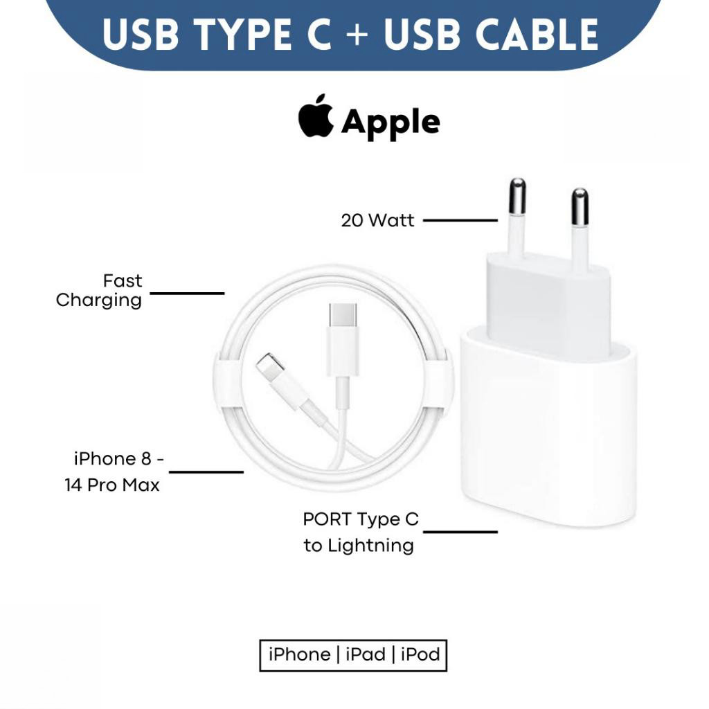[Mall] Adaptor Charger 20W + Kabel Fast Charging Lightning Cas iPhone | Support iPhone X/11/12/13/14/15 Series | Lengkap