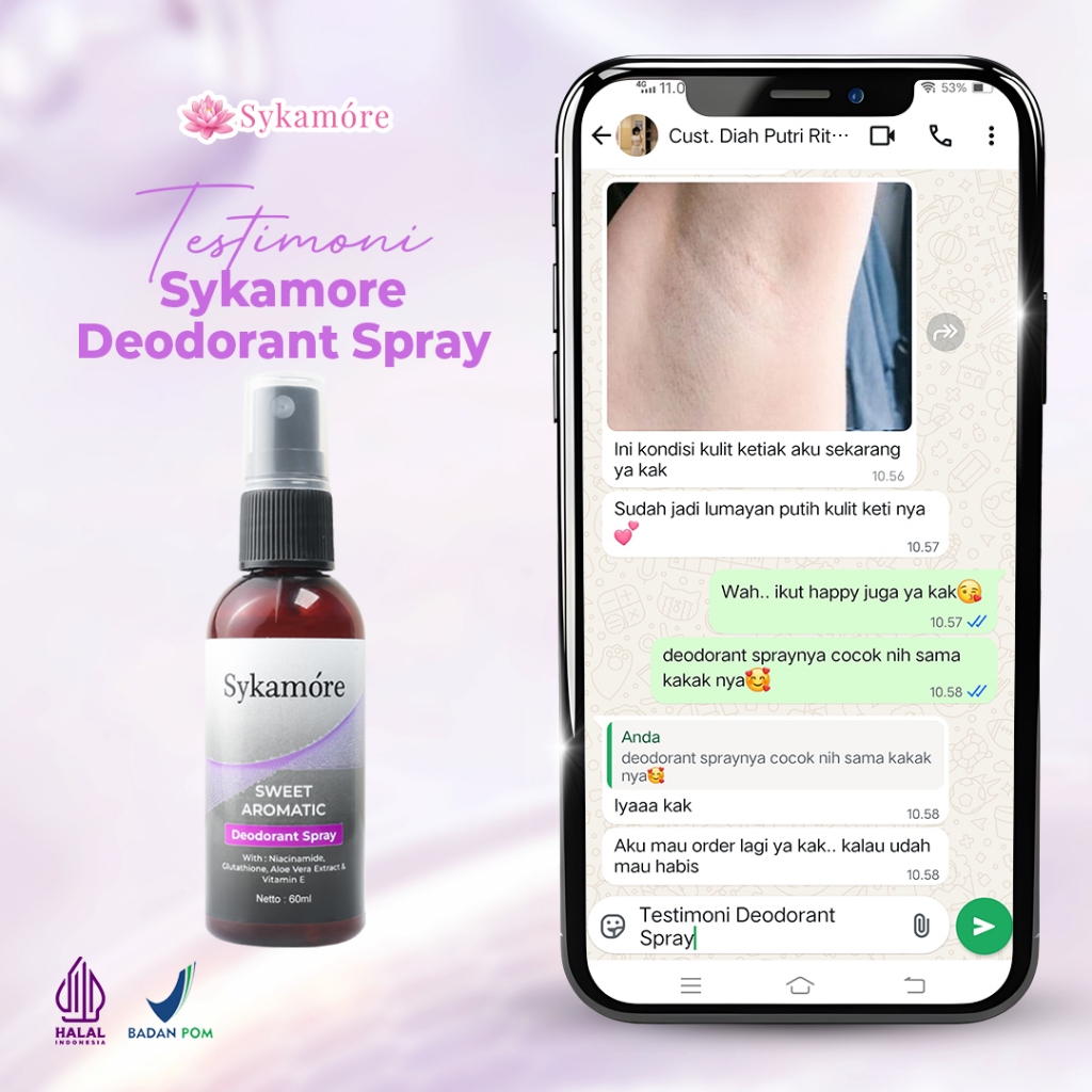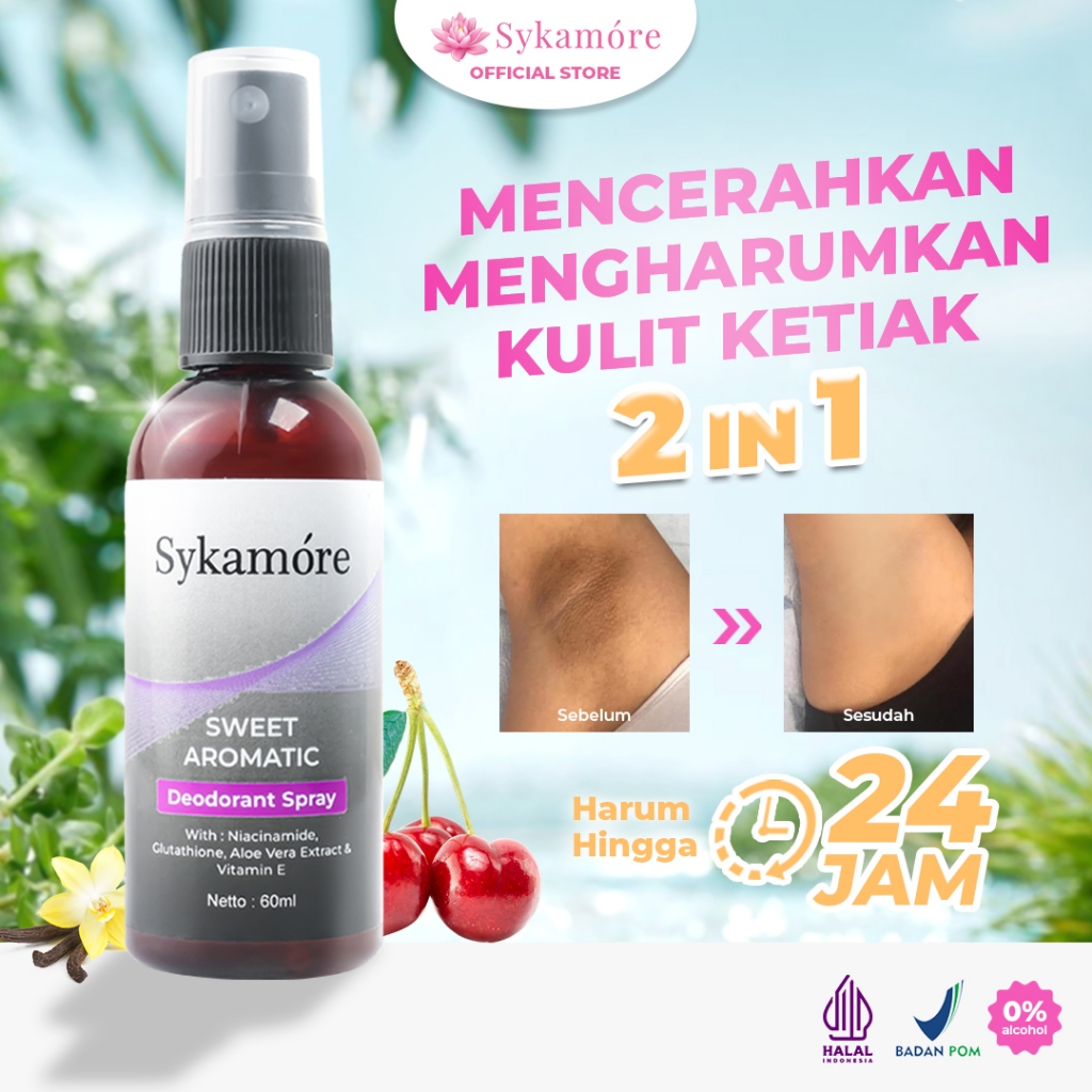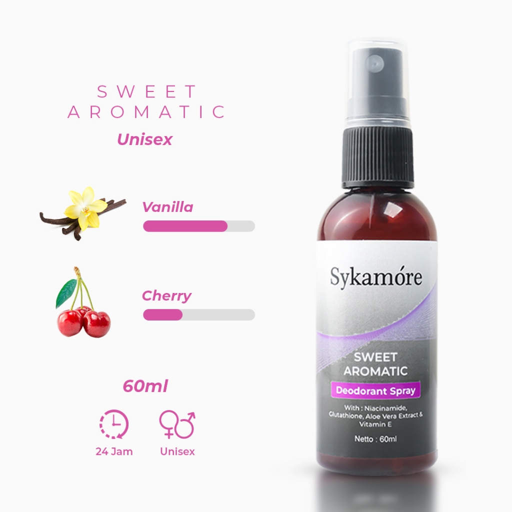 Sykamore Sweet Aromatic - Deodorant Spray 60ml Pemutih Whitening With Niacinamide 3% dan Glutathione
