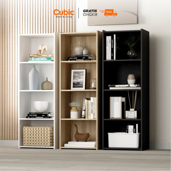 RAK BUKU SEBAGUNA Cubic Rak 4 Susun Minimalis / Lemari Buku Serbaguna / GENIO ORC 4 - Motif Kayu RAK BUKU MINIMALIS