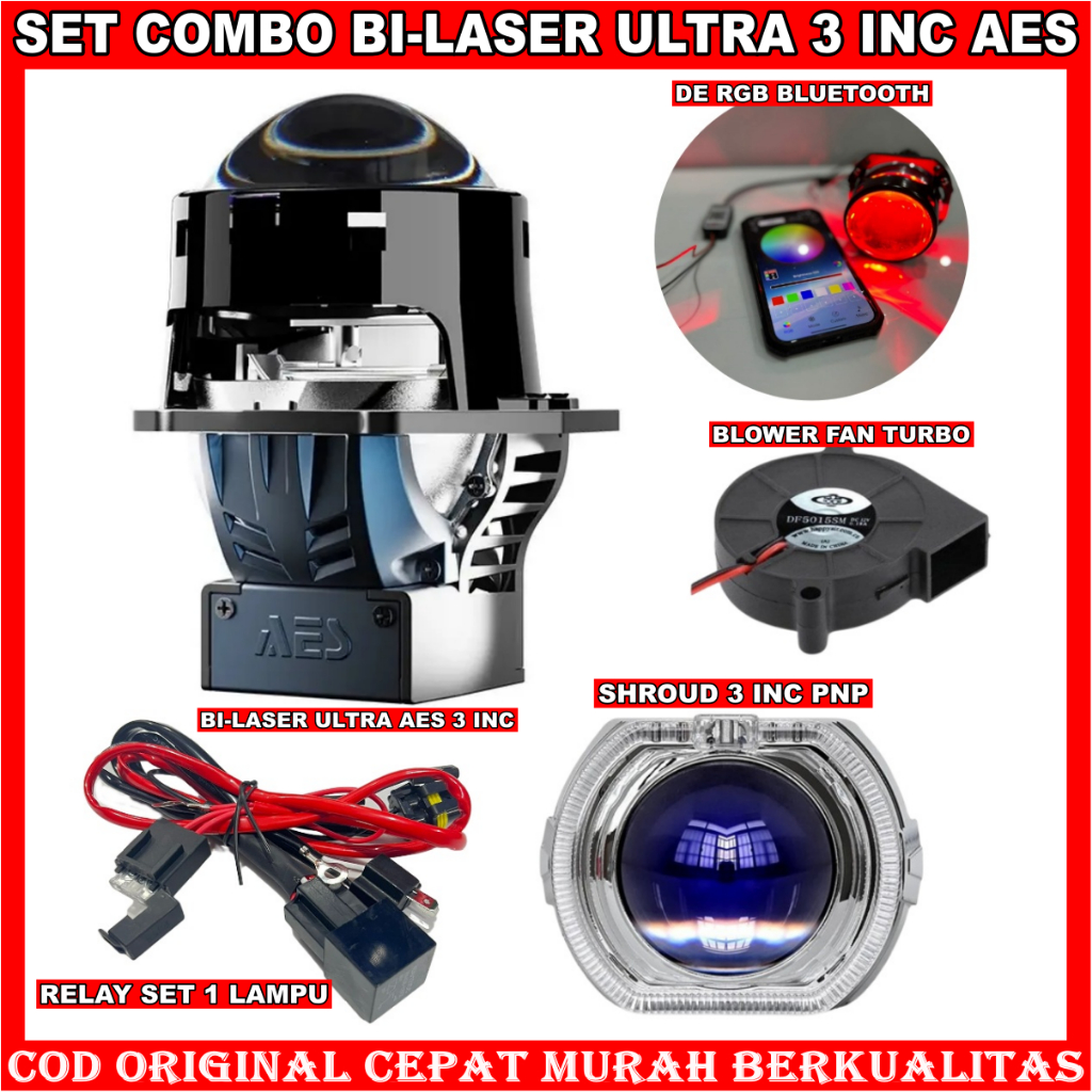 ORIGINAL BILED PROJETOR BILASER AES ULTRA 3 INCH TIR TECHNOLOGY 75 WATT ULTRA COOLER PAKET COMPLIT AES BILED MOTOR MOBIL