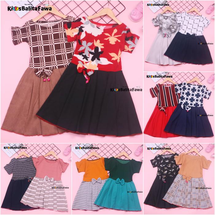 DRESS SABRINA PITA 2 7 TAHUN DRES ANAK PEREMPUAN MURAH BAJU CEWEK MOTIF SQUARE, 2 3 TAHUN