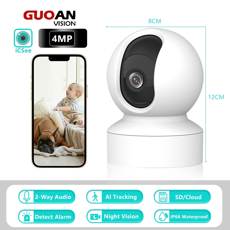 GUOANVISION 4MP CCTV CAMERA WIFI INDOOR ICSEE PTZ HD PELACAKAN HUMANOID IP CAMERA