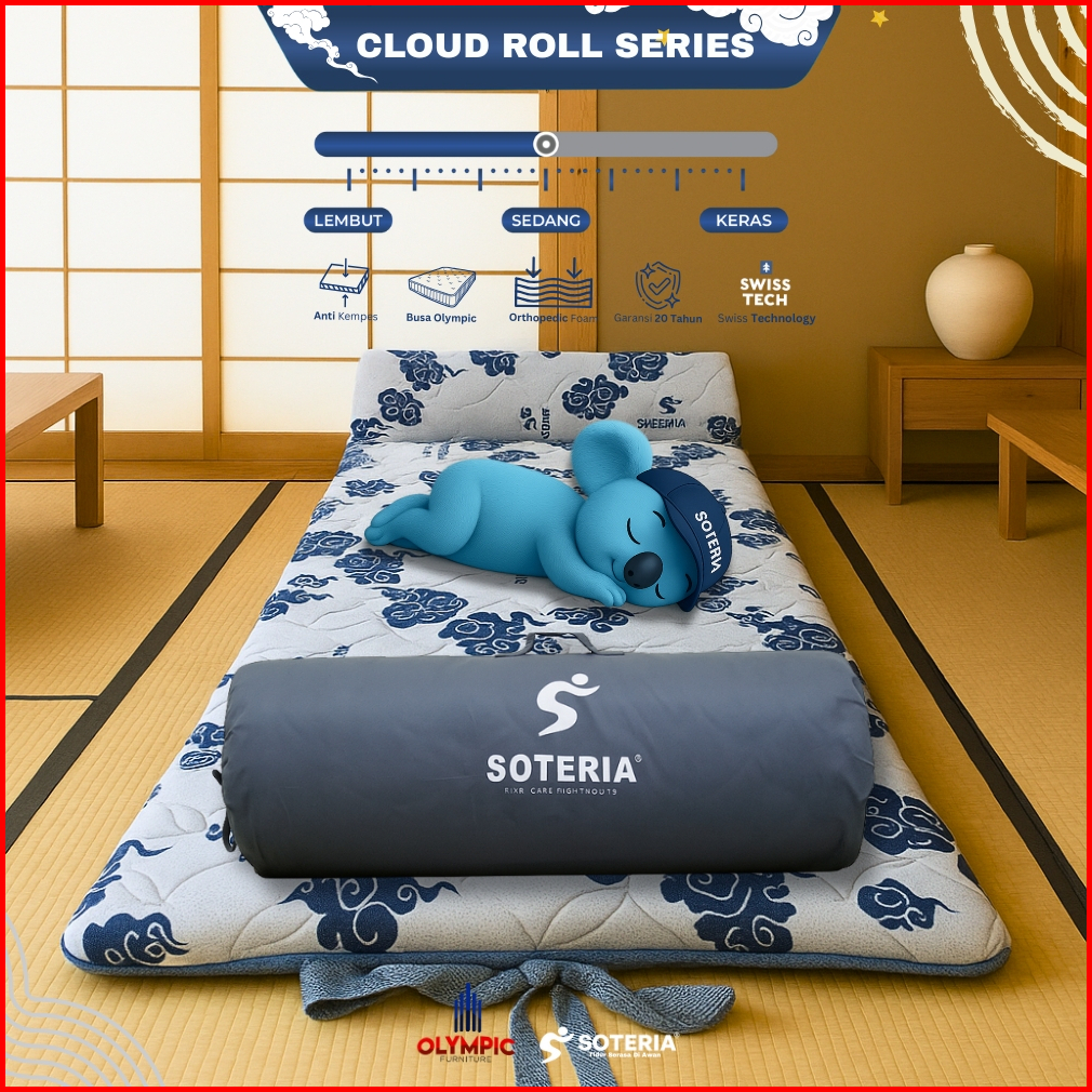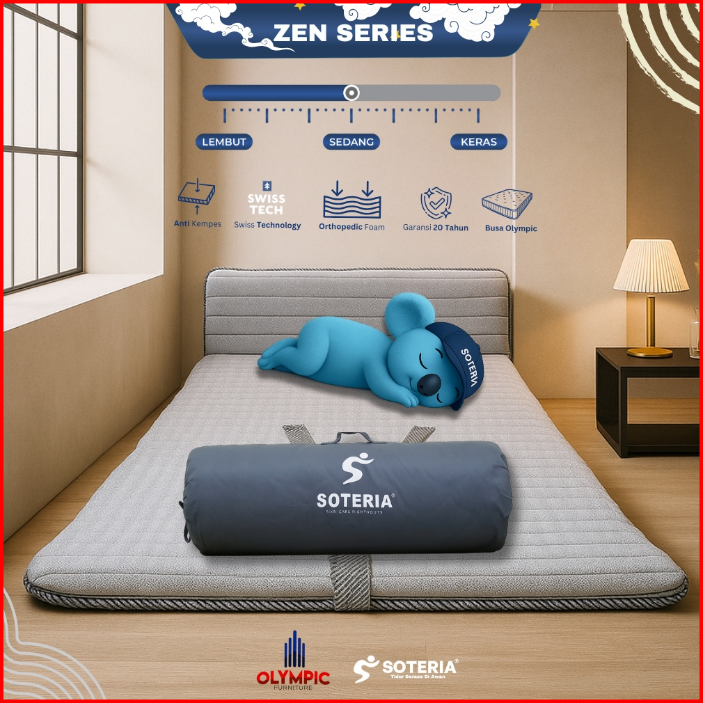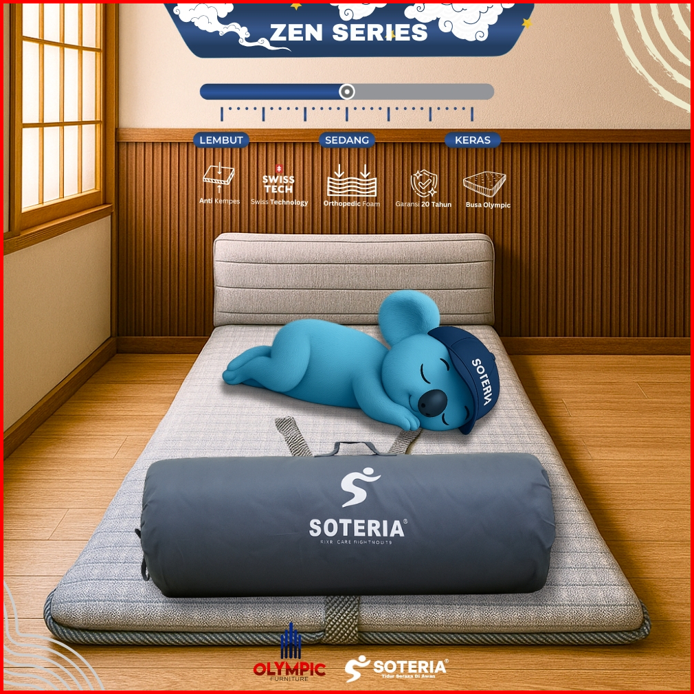 Olympic X Soteria Zen Series Kasur Lipat Portable Bonus Tas Bulat Serut Matras Busa Soteria Original Premium Anti Kempes