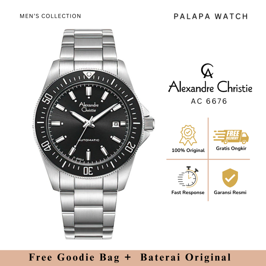 Jam Tangan Pria Alexandre Christie Automatic AC 6676 AC6676 Rantai Original Garansi 1 Tahun