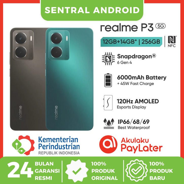 HP Realme P3 5G 12GB+14GB*/256GB - Snapdragon® 6 Gen 4 - 6000mAh Battery - Garansi Resmi Realme Indonesia