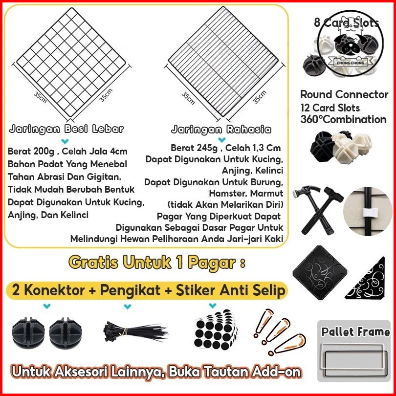 1*hitam+2Penyambung, 2*hitam+4Penyambung, 3*hitam+6Penyambung, 4*hitam+8Penyambung, 1*putih+2Penyambung, 2*putih+4Penyambung, 3*putih+6Penyambung, 4*putih+8Penyambung, 1*hitam mesh fence, 1*putih mesh fence, 1*pintuhitam+2Penyam, 1*pintuputih+2Penyam, 1*Hitam mesh door, 1*Pintu mesh door, 1*Dasar hitam, 1*Dasar putih, Tangga hitam16*42cm, Tangga putih16*42cm, Dulang hitam, 1*Pintu putar hitam, 1*Pintu putar putih