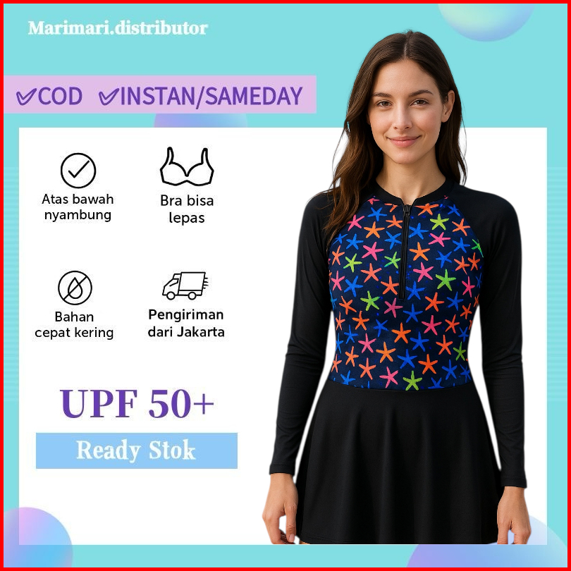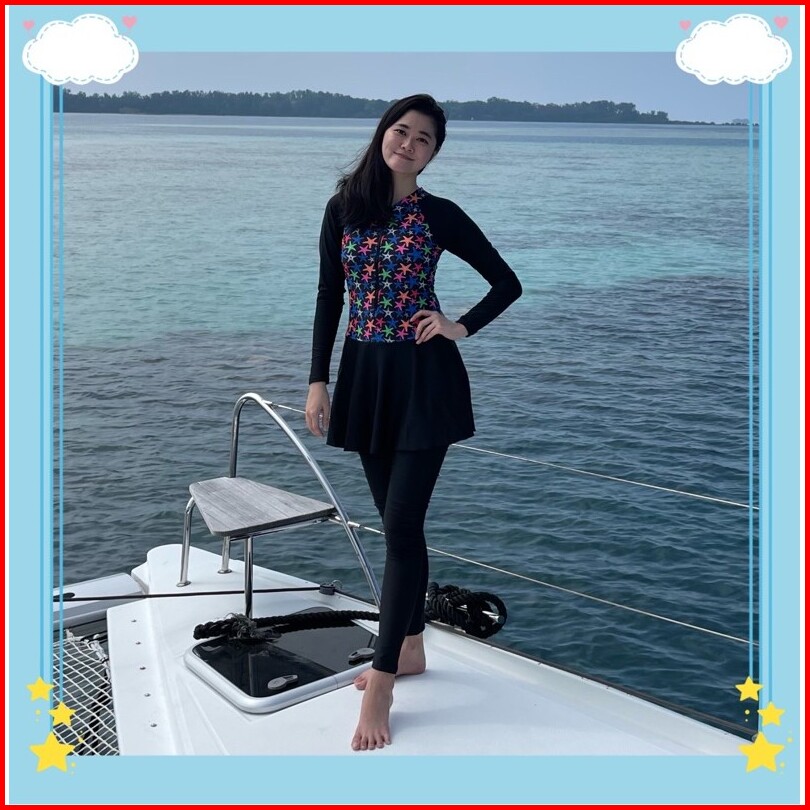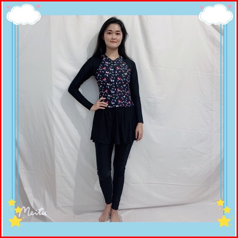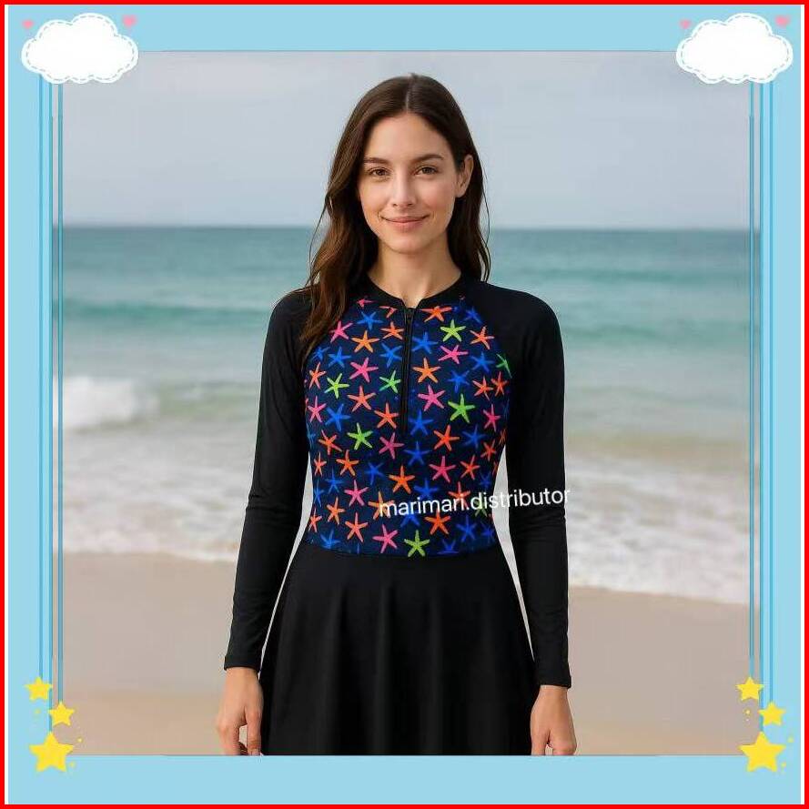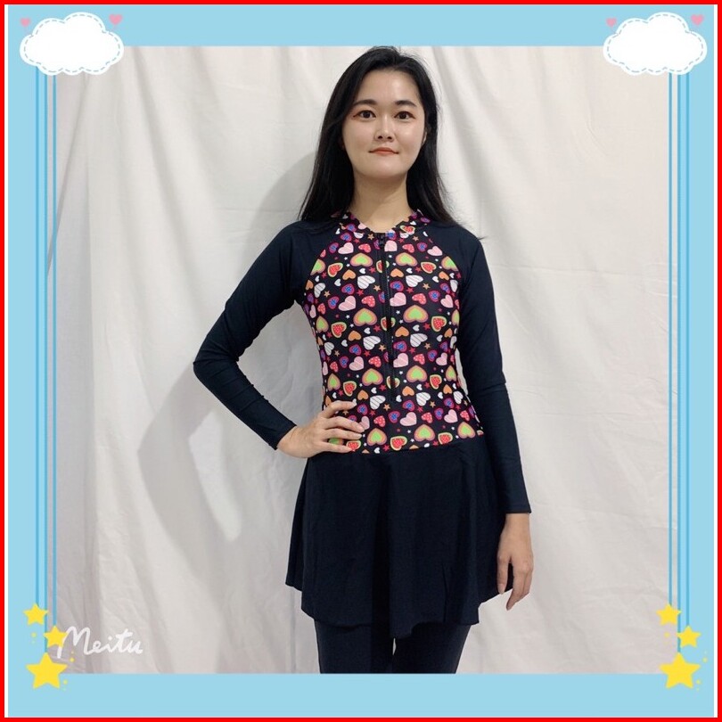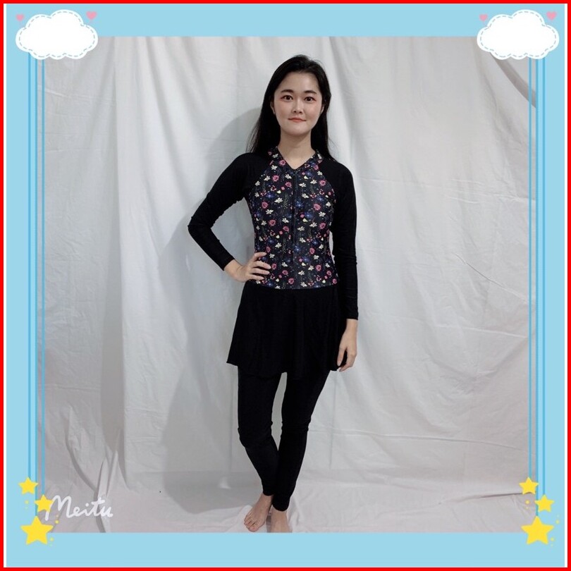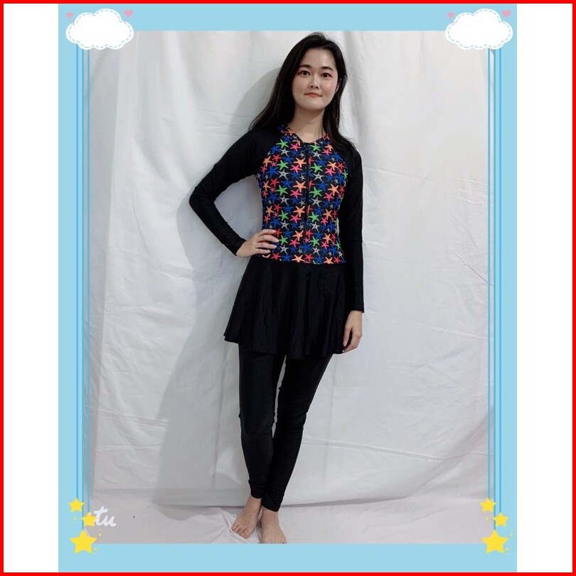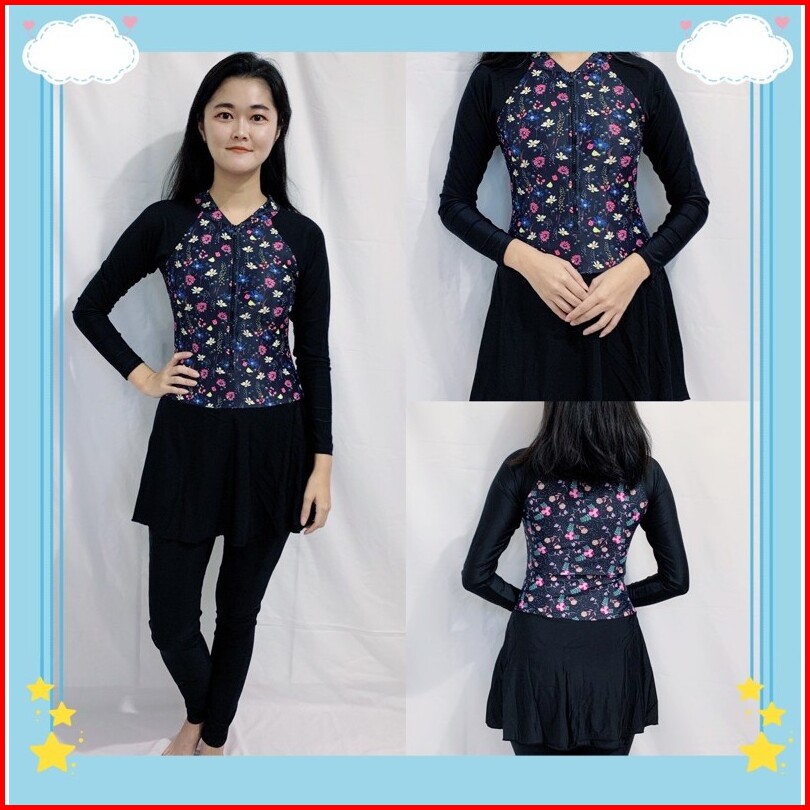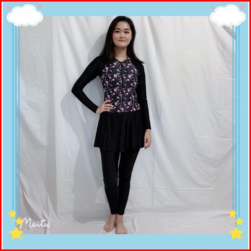 39054 Baju Renang Dewasa Hijab Muslim Lengan Panjang Celana Antiuv Nyambun Motif Cewek Wanita