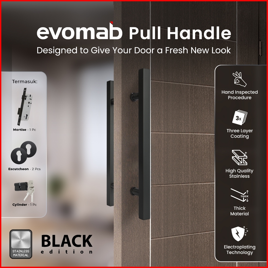 Evomab Gagang Pintu Rumah Baut Tembus Pull Handle Minimalis Hitam 1.10
