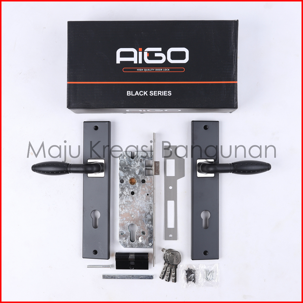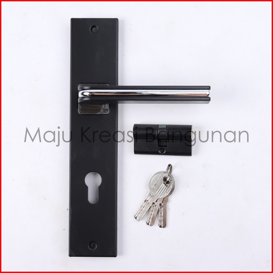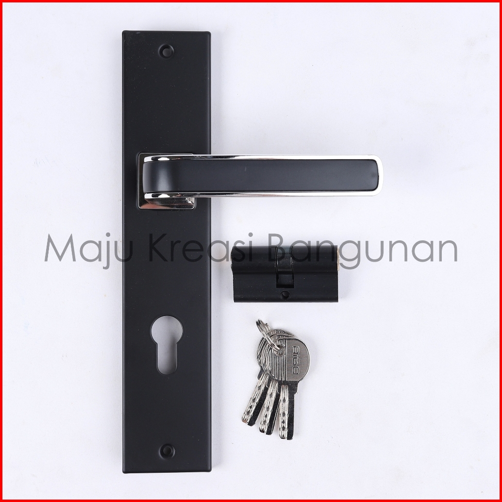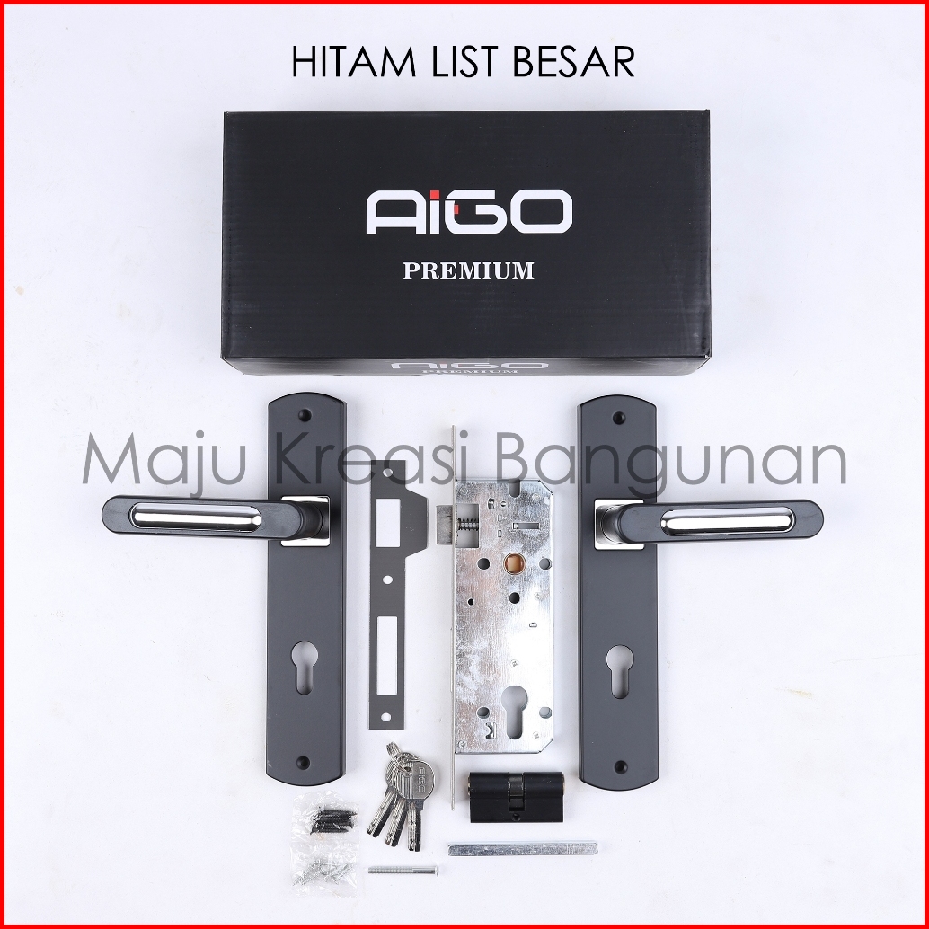 Handle Pintu Ukuran Besar Set Aigo Hitam List Silver Kunci Rumah Anak Gagang Handel Granat