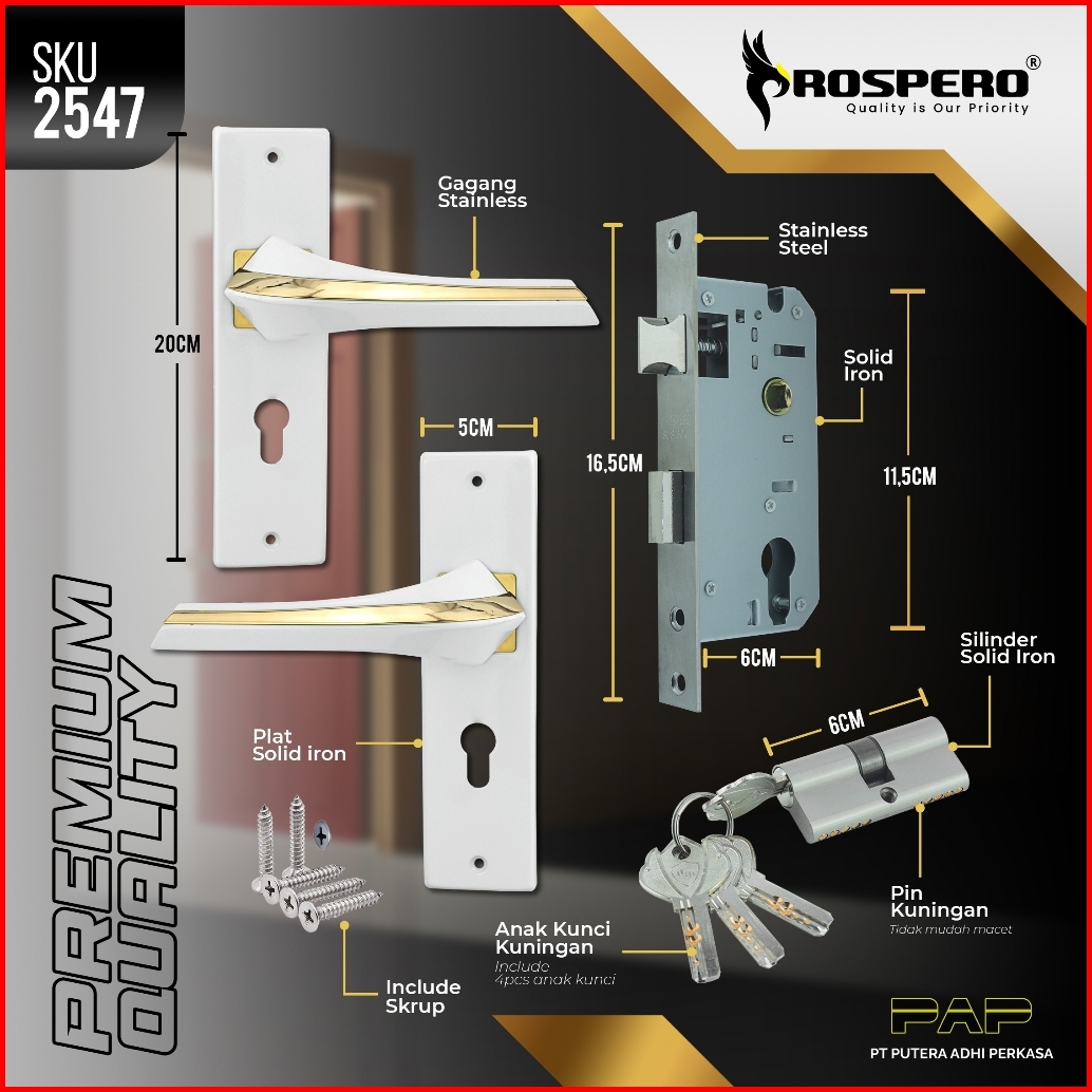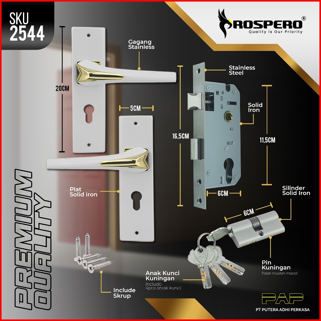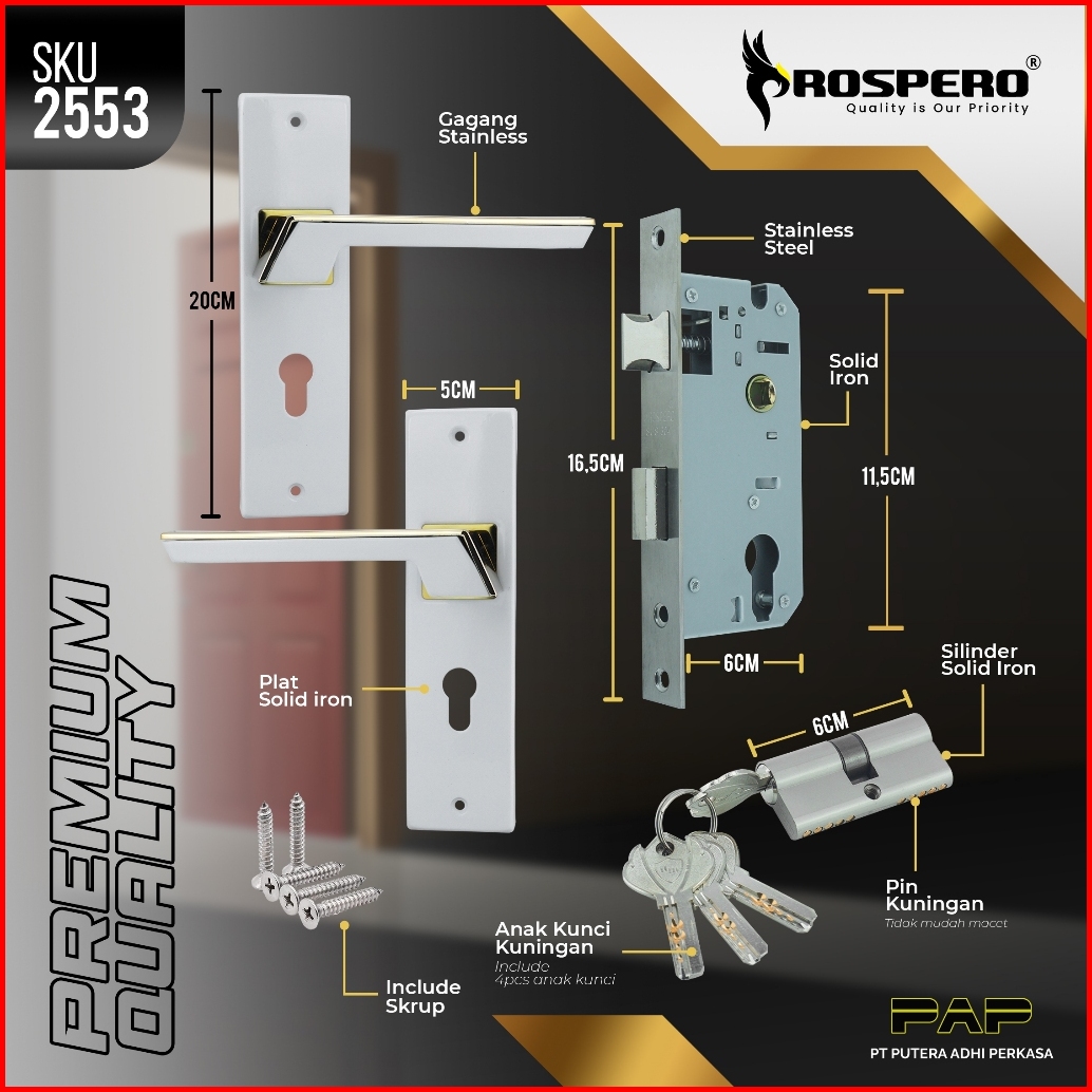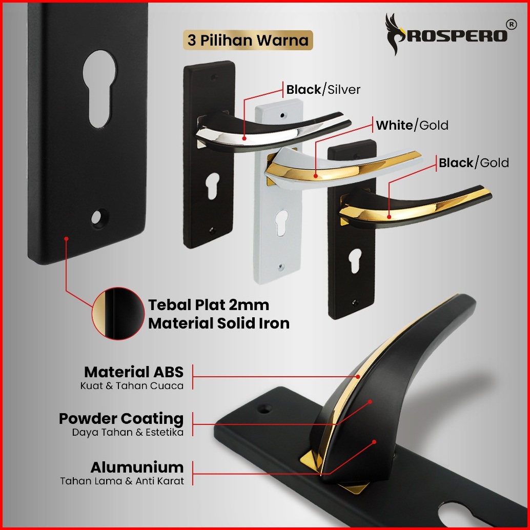 Prospero Handle Kunci Pintu Rumah Tanggung 20cm Gagang Alumunium Set Silinder Anak Kunci Komputer Keys