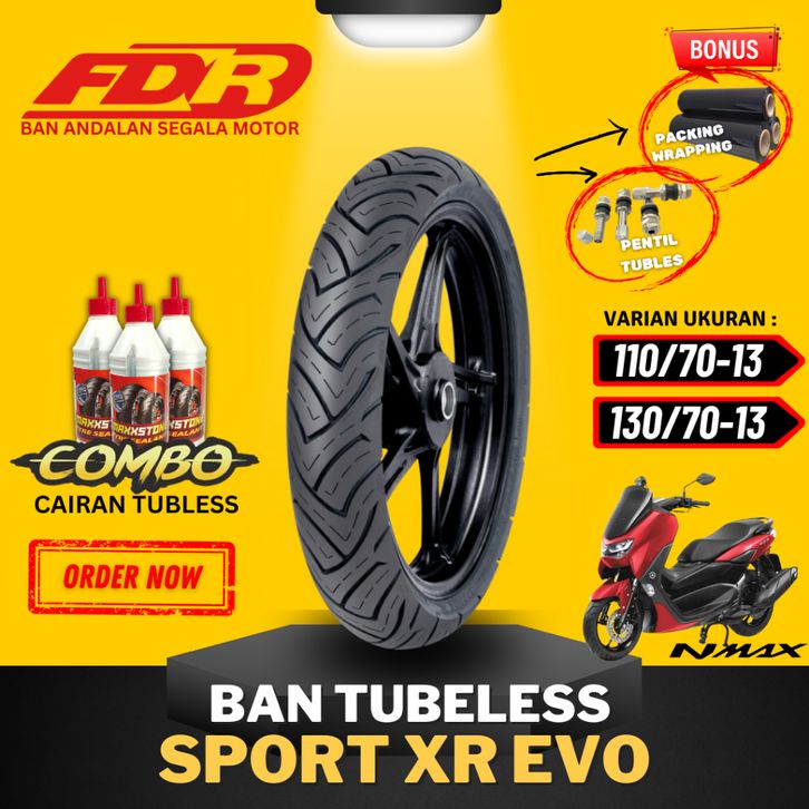 [PAKET SEPASANG MURAH] BAN FDR SPORT XR EVO RING 13 / ( 110/70-13 / 130/70-13 ) BAN FDR TUBELESS TUBLES RING 13 / BAN FD