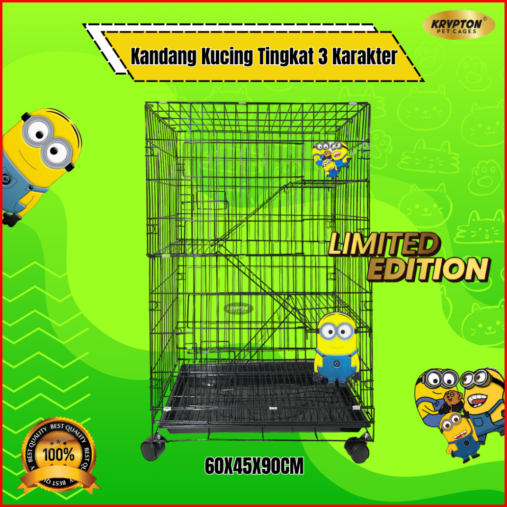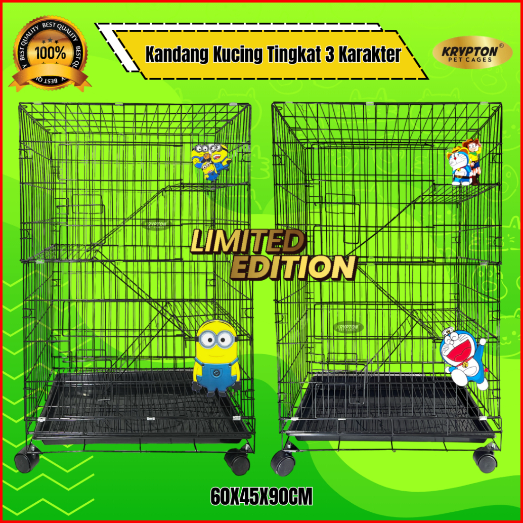 Kandang Kucing Tingkat 3 Size L 90x60x45 Roda - Berat 6kg