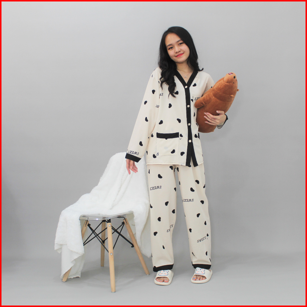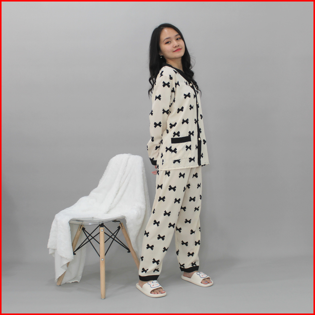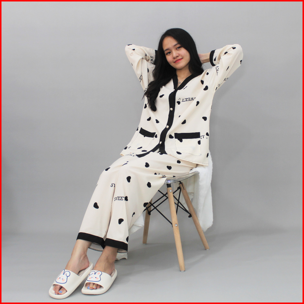 Yx Claudia Powysuit Piyama Korea Bahan Satin Sutra Lengan Panjang Celana Panjang Baju Tidur Wanita