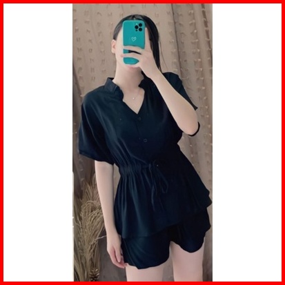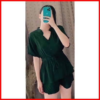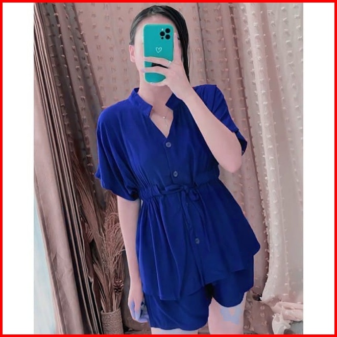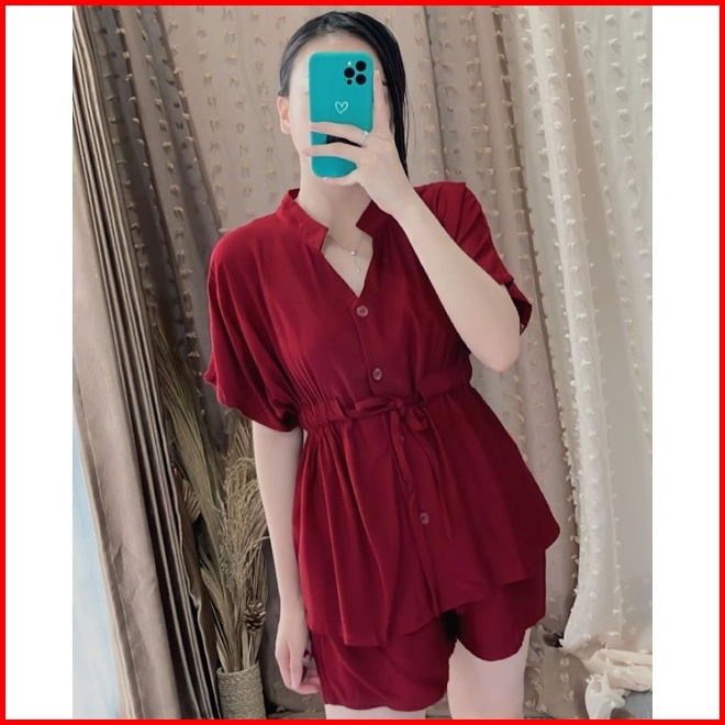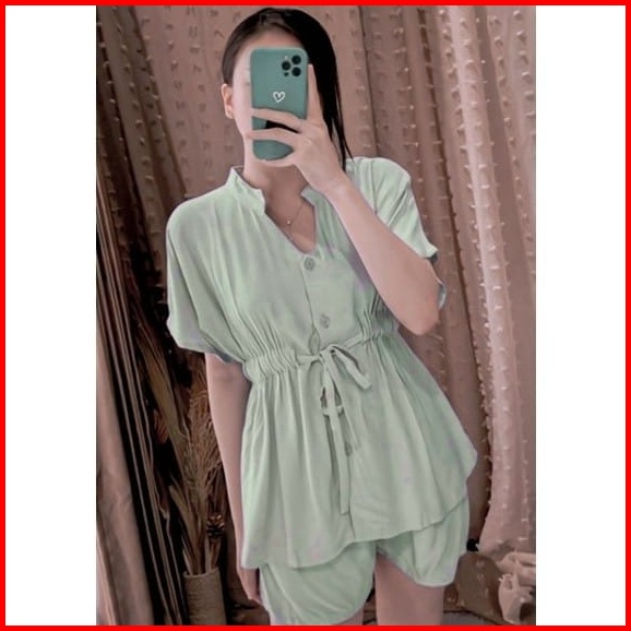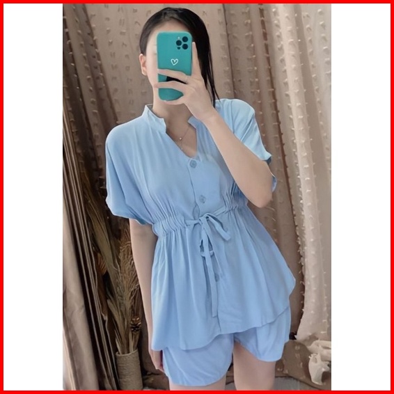Piyama Wanita Piyama Rayon Baju Tidur Piyama Pendek Kerah Model Serut