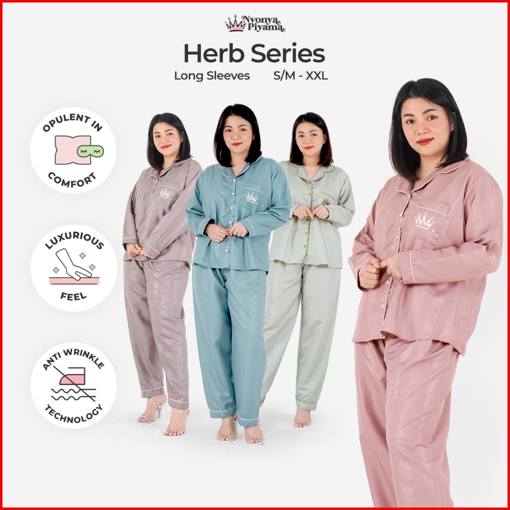Best Seller Nyonya Piyama Poly Bamboo Set Lengan Panjang Polos Herb Series Vol 1
