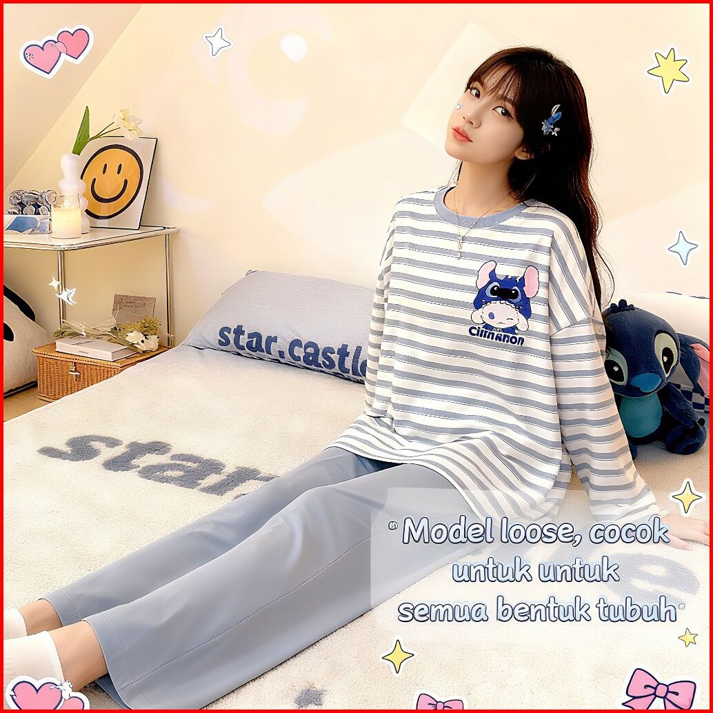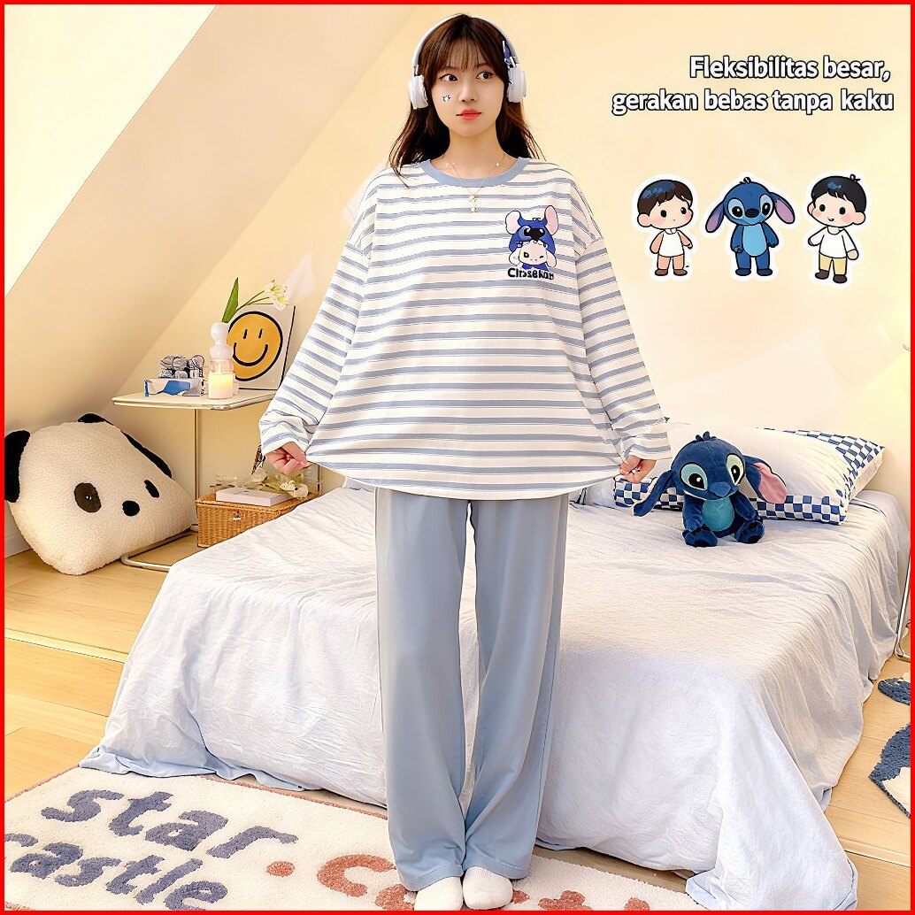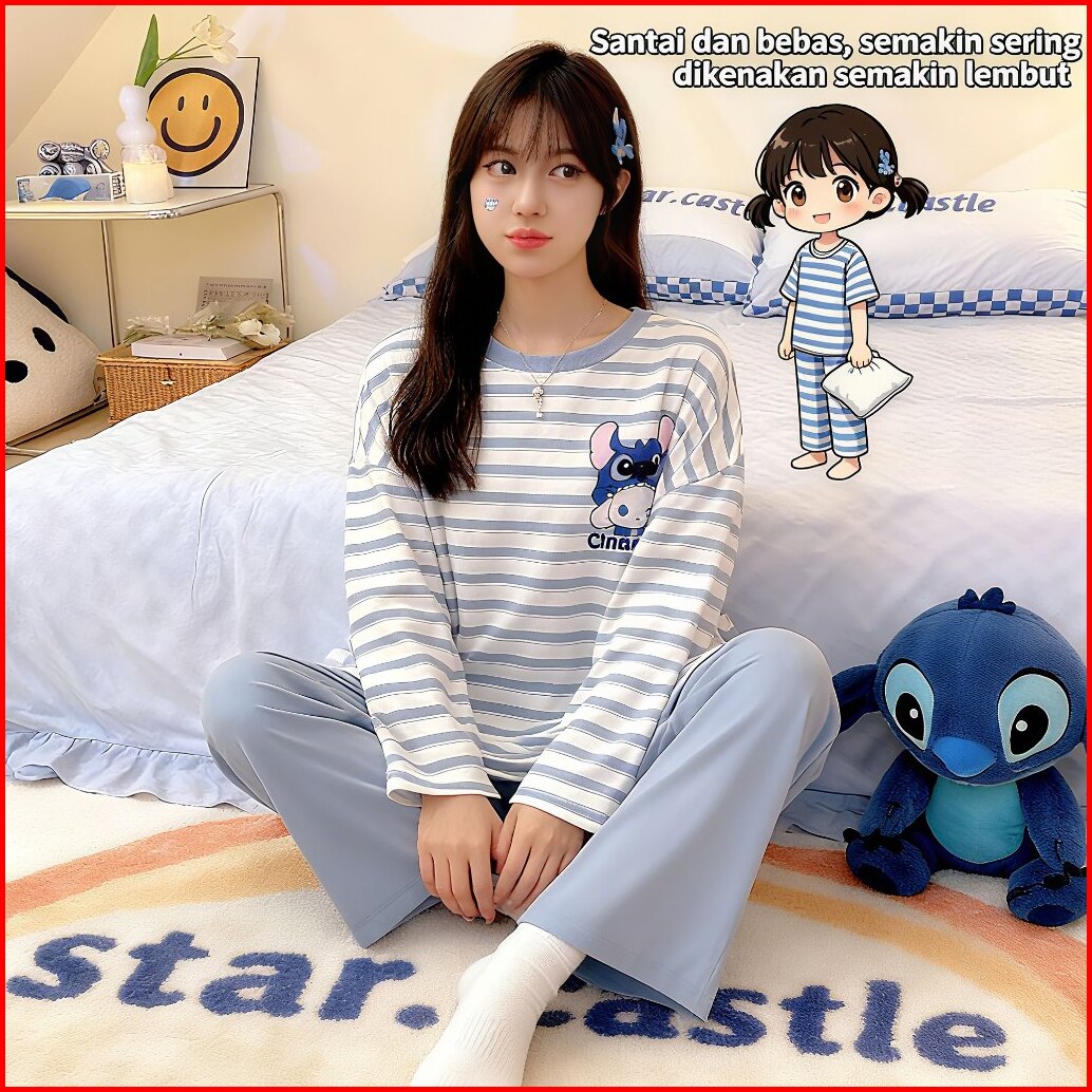 Baju Tidur Setelan Piyama Wanita Set Lengan Panjang Baju Tidur Wanita Celana Panjang Setelan Baju Tidur Wanita