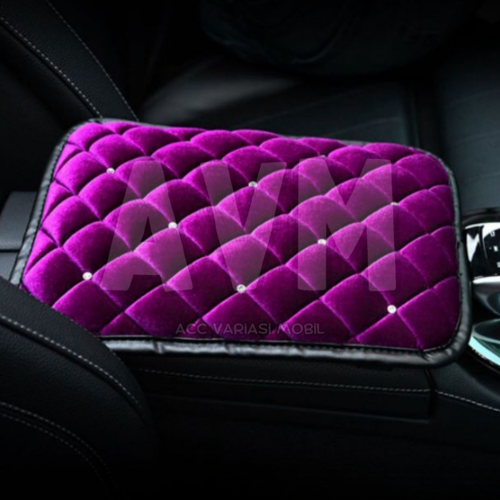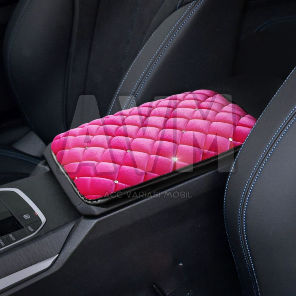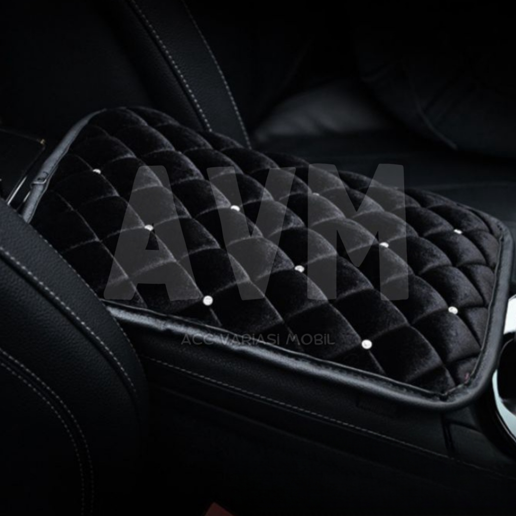 Cover Car Armrest SPOTTED Diamond Bahan BLUDRU / Sarung Console Box Mobil Universal / Bantal Sandaran Siku Tangan Tebal