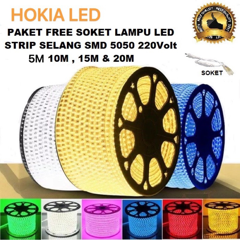 LAMPU SELANG LED STRIP SMD 5050 220V PAKET 5M,10M ,15M ,20M FREE SOKET 1PCS(SIAP PAKAI )