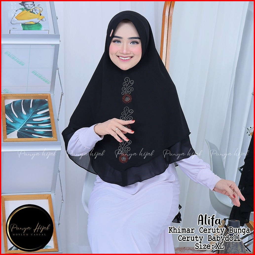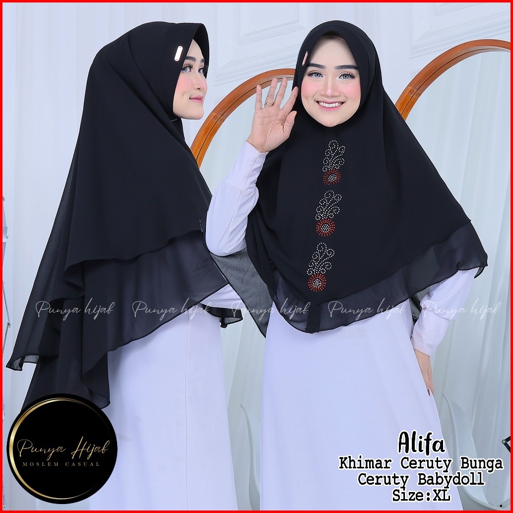 Hijab Khimar 2 Layer Jumbo Syari Bunga Jilbab Ceruty Babydoll Punya Hijab