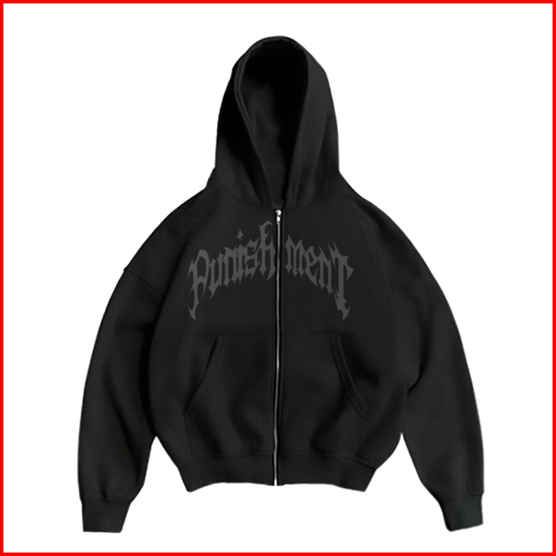Punishmment Zipper Pria Zipper Boxy Unisex Flacce Tebal Gramasi 280