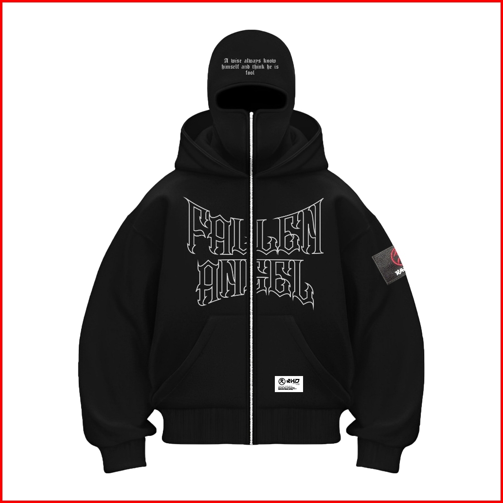 Rhid - Hoodie Balaclava Pria Hitam Fallen Angel