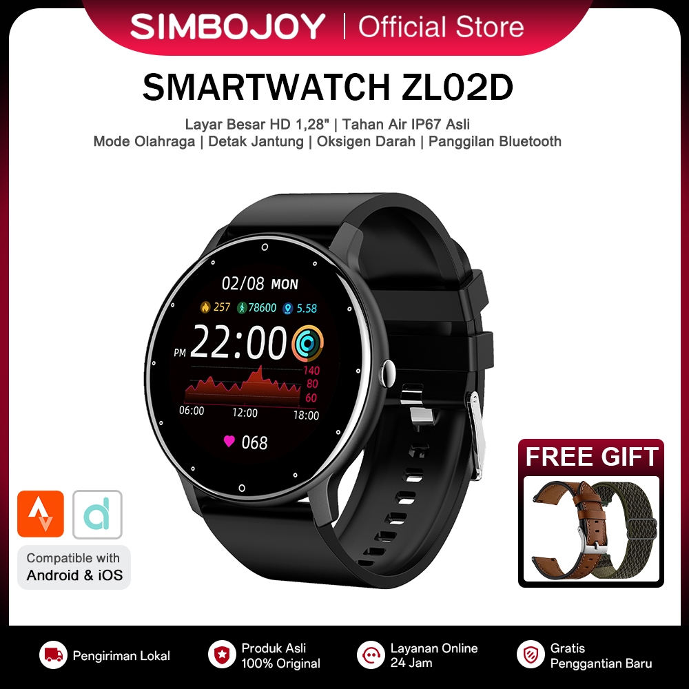 PROMO - SIMBOJOY SMARTWATCH ZL02D LAYAR TERANG 1.28'' ANTI AIR IP67 OLAHRAGA JAM TANGAN SMARTWATCH ORIGINAL