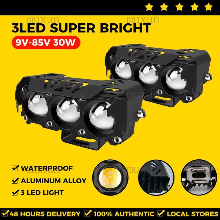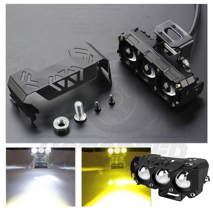 Lampu Led Motor 1 Lampu Kabut Sepeda Motor LED Lampu Kabut Mengemudi Warna Ganda Waterproof 3 Mata Tinggi Rendah Kunin