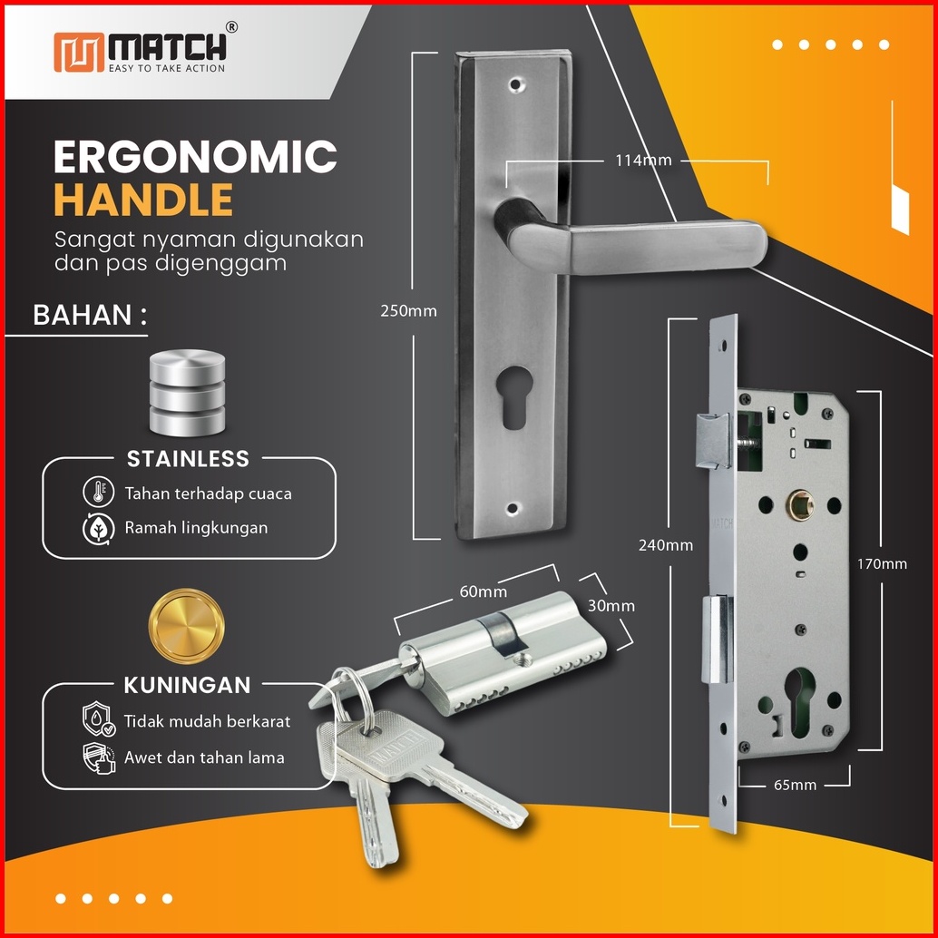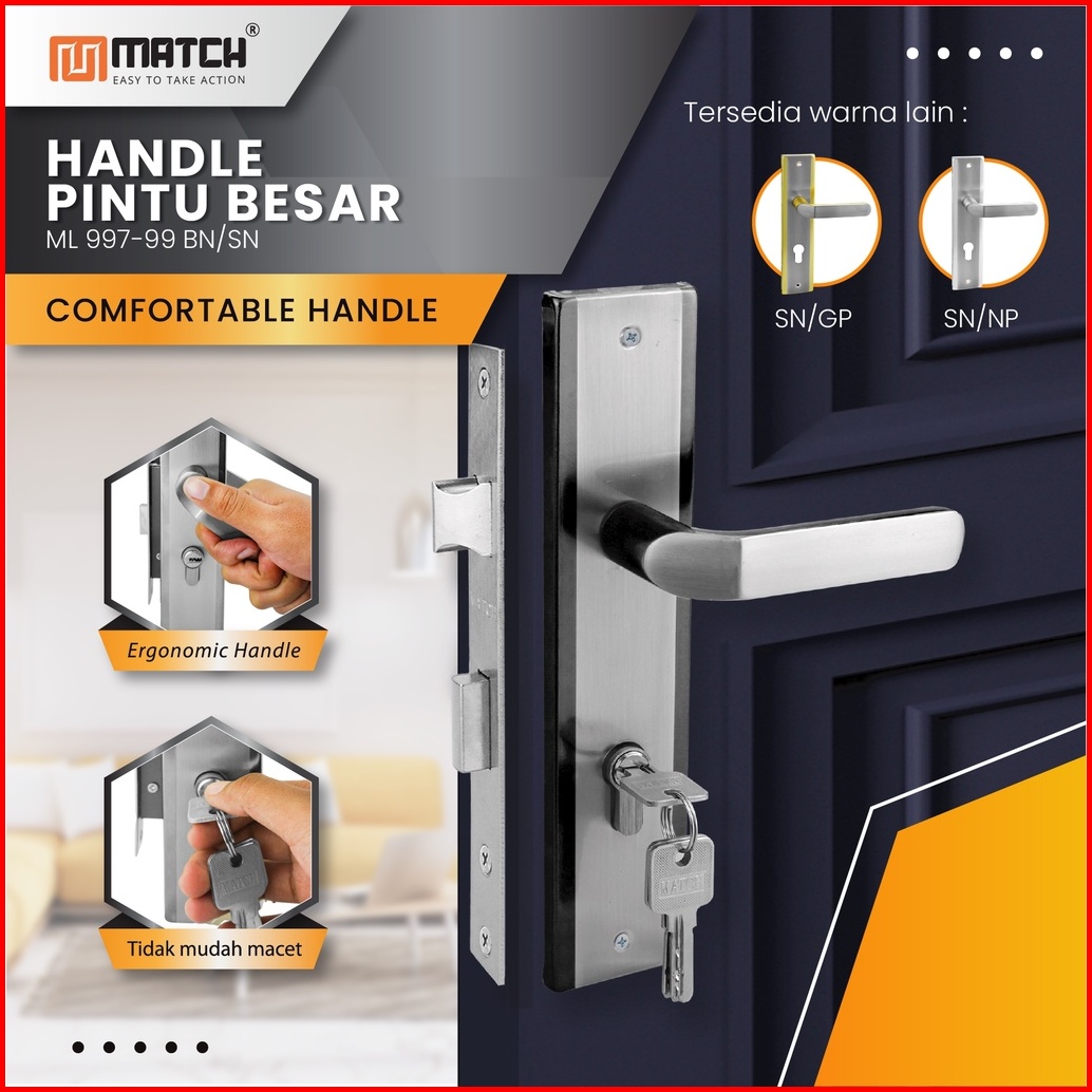 Match Kunci Pintu Set Siap Pasang Gagang Kunci Handle Pintu Rumah Besar Stainless Black Ml 99