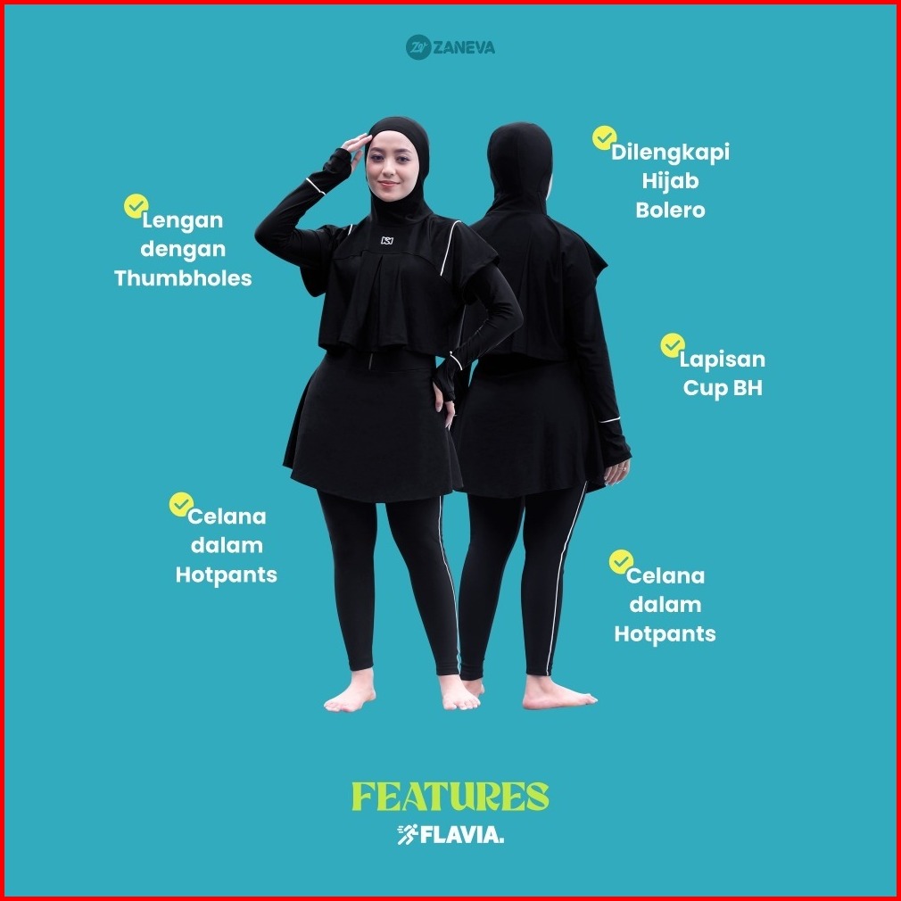 Muslimah Swimwear X Zaneva - Flavia Muslimah Swimwear Stelan Baju Renang Wanita Stylish
