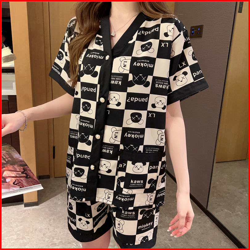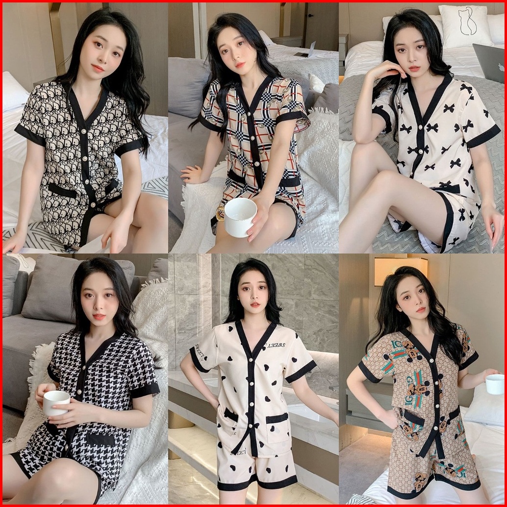 Lovera Piyama Wanita Dewasa Model Kancing Depan Mewah Hp Lengan Pendek Celana Pendek High Quality Sleepwear