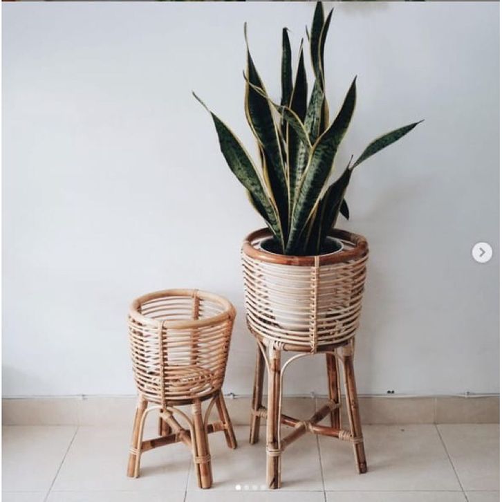 HIASAN RUMAH STANDING POT ROTAN NATURAL FINISHING MENGKILAP TEMPAT BUNGA DEKORASI STUDIO FOTO SUDUT RUANGAN