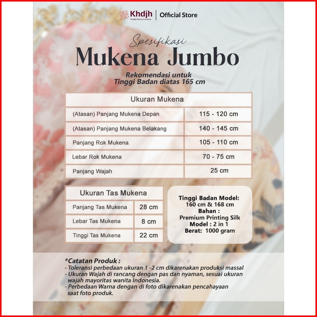 Khadijahlabel Mukena Dewasa Jumbo Premium Silk Renda Mewah Terbaru Arunika