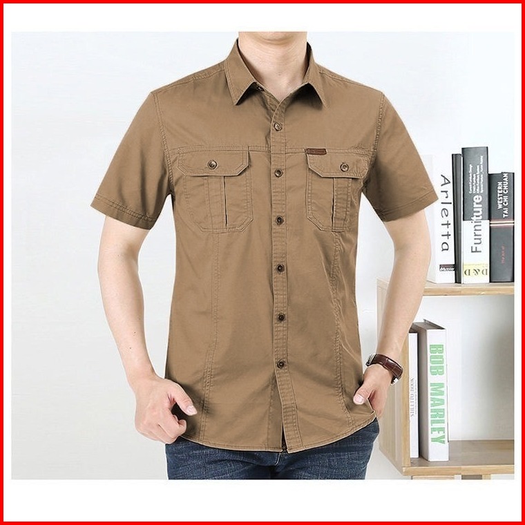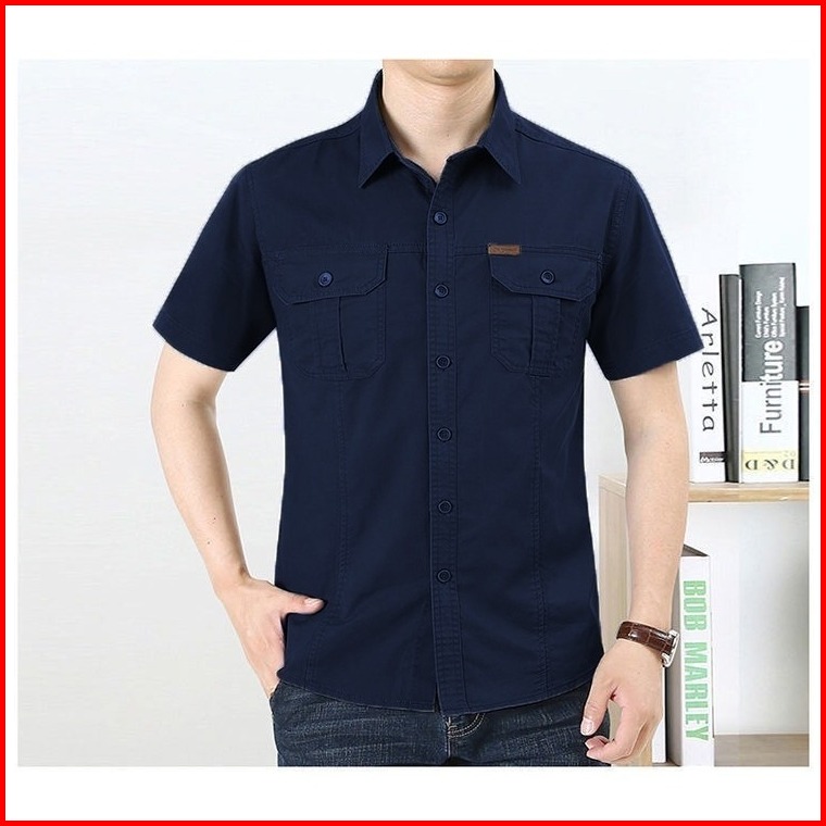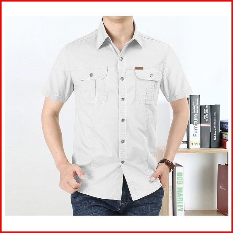Komara Store Kemeja Pendek Pria Bahan Cotton Baby Canvas Lengan Pendek Casual Dewasa Keren Formal Cowok Size M-5xl Ready
