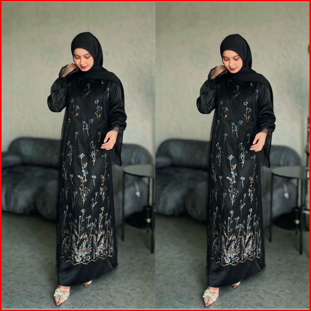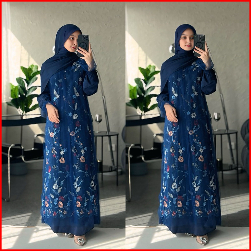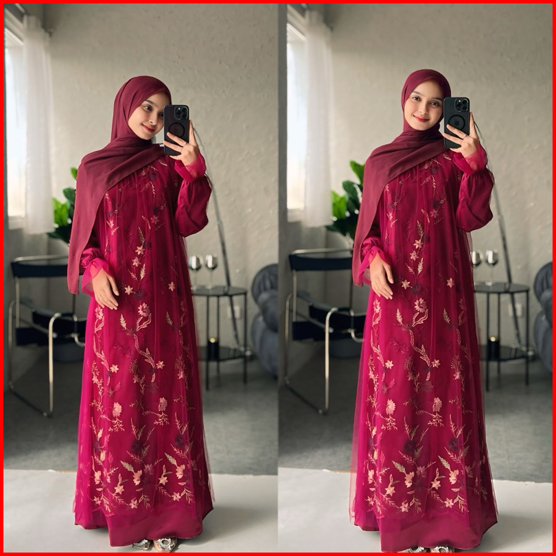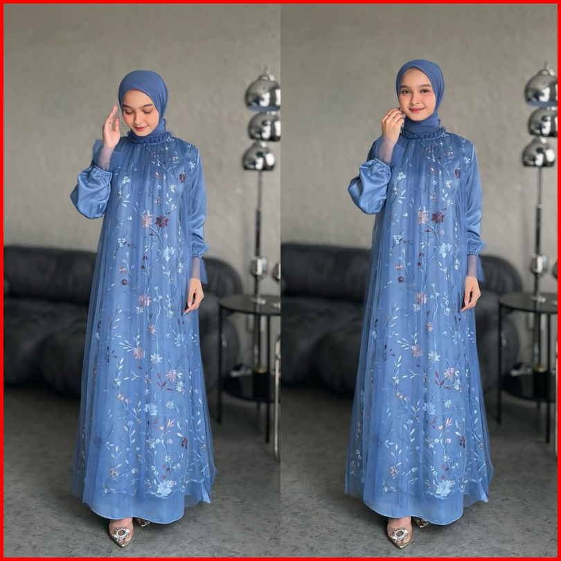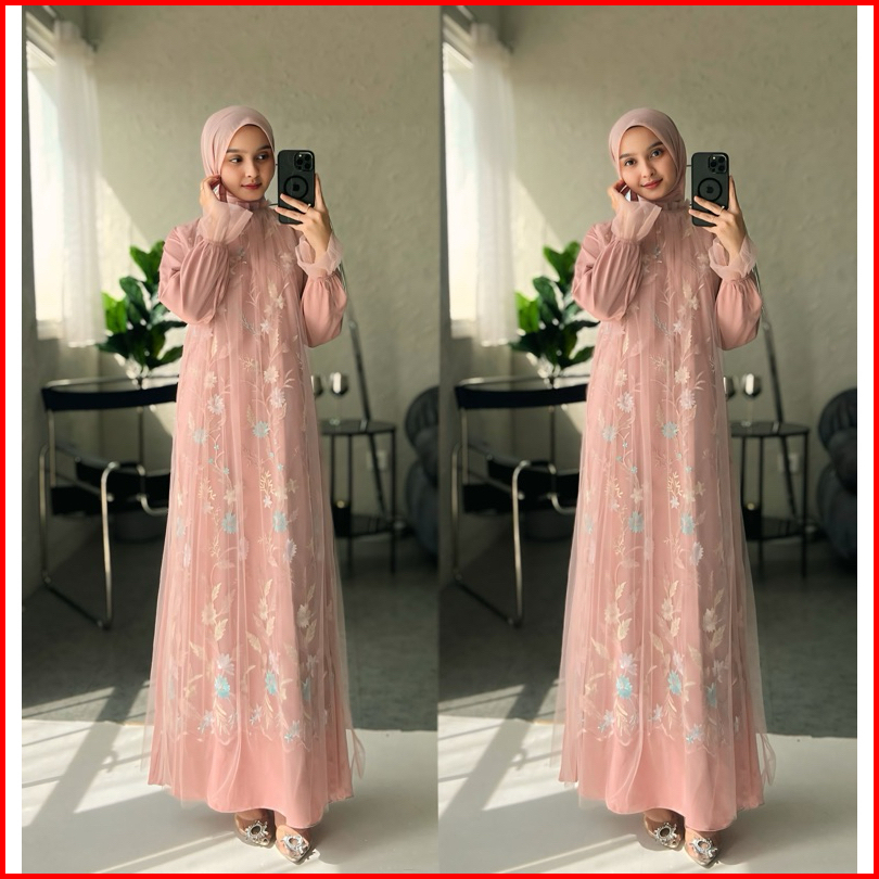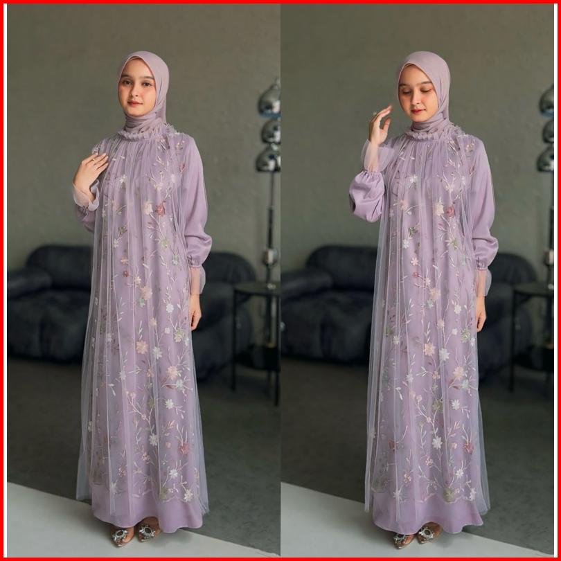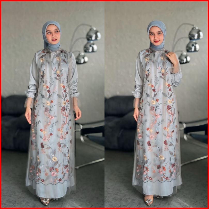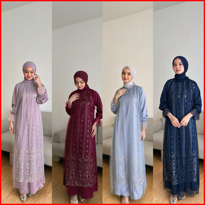 Hijablabel - Promo Sheren Dress Korean Tulle Dress Terbaru Gamis Kondangan Dress Pesta Tile Premium Gamis Pesta Tile