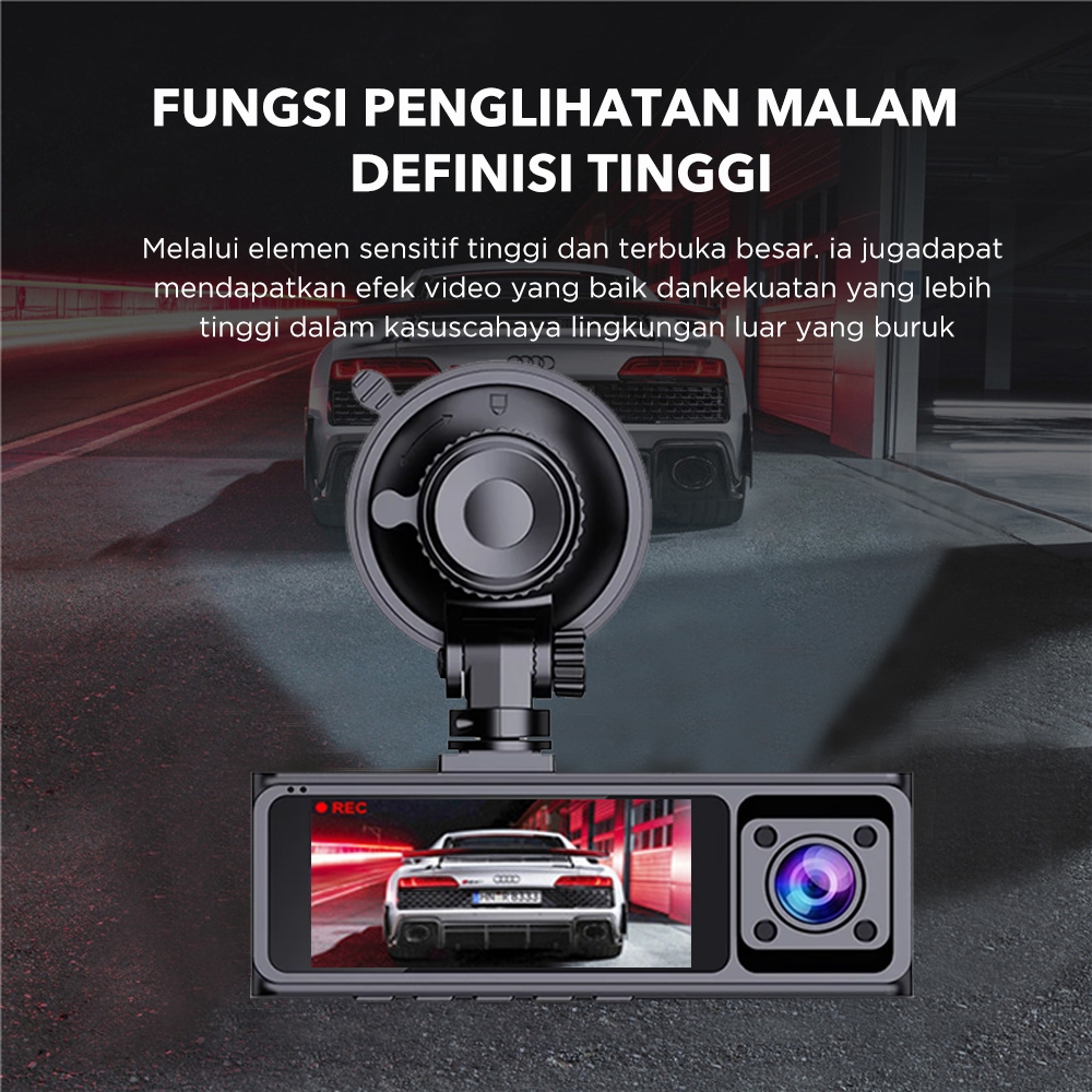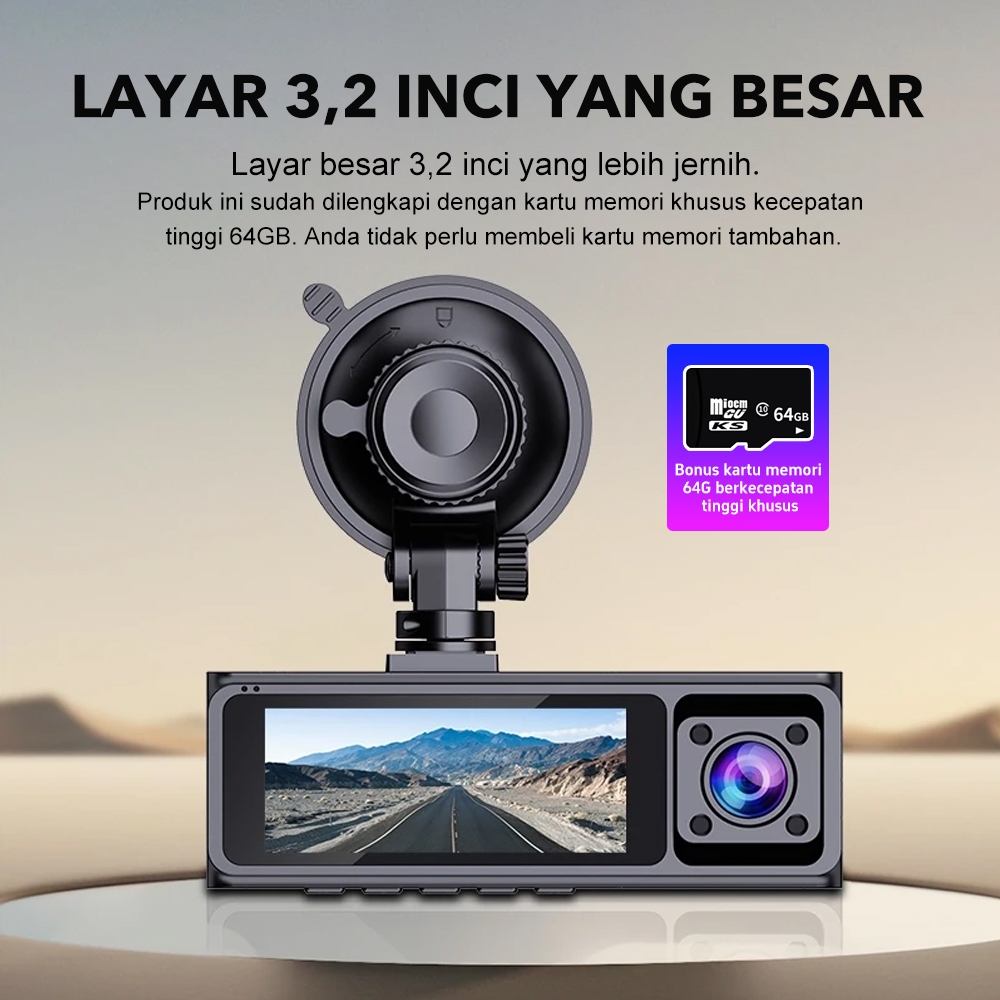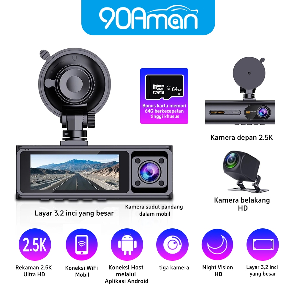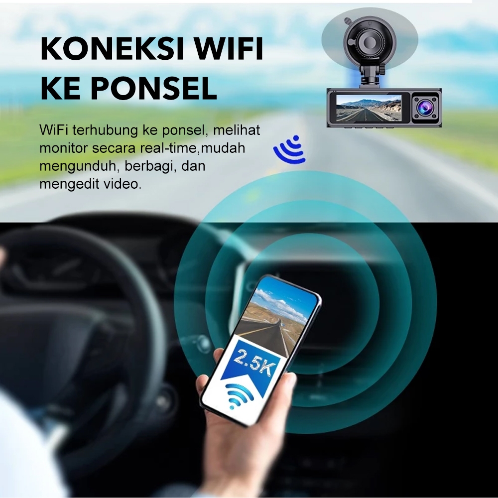 F5 DASHCAM MOBIL 3 KAMERA - WIFI SMARTPHONE & DVR MOBIL ANDROID AUTO, TYPE-C REKAM DEPAN+BELAKANG+KABIN 2.5K KAMERA MOBIL DASHCAM, LAYAR 3.2 INCI, NIGHT VISION, BONUS 64GB - GARANSI RESMI 1 TAHUN