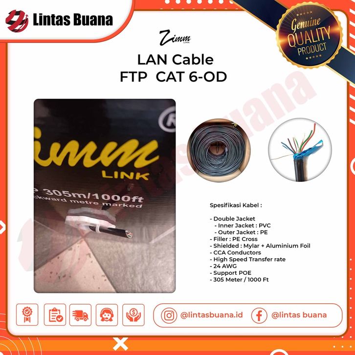 Kabel Lan FTP CAT6-OD double jacket outdoor 1roll 305 Meter Zimmlink