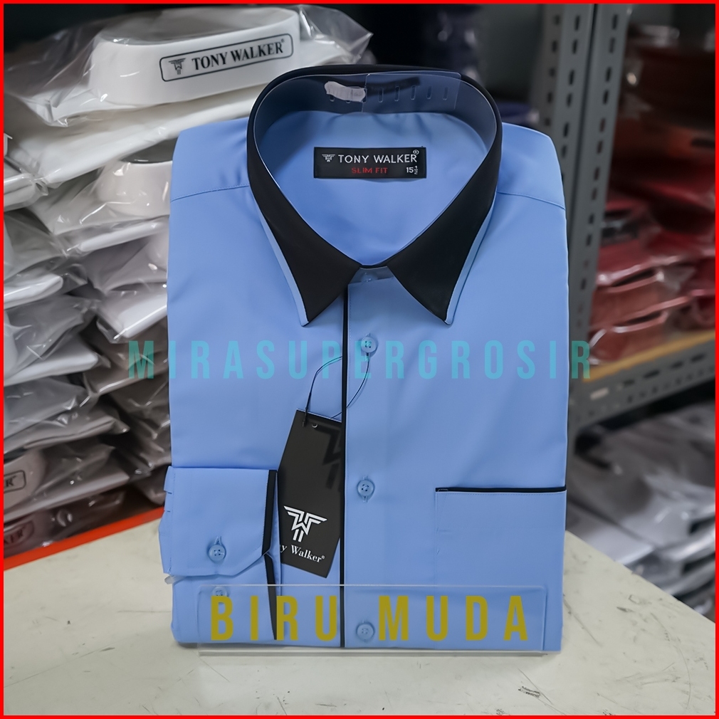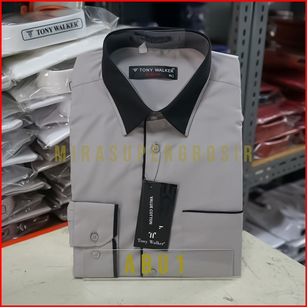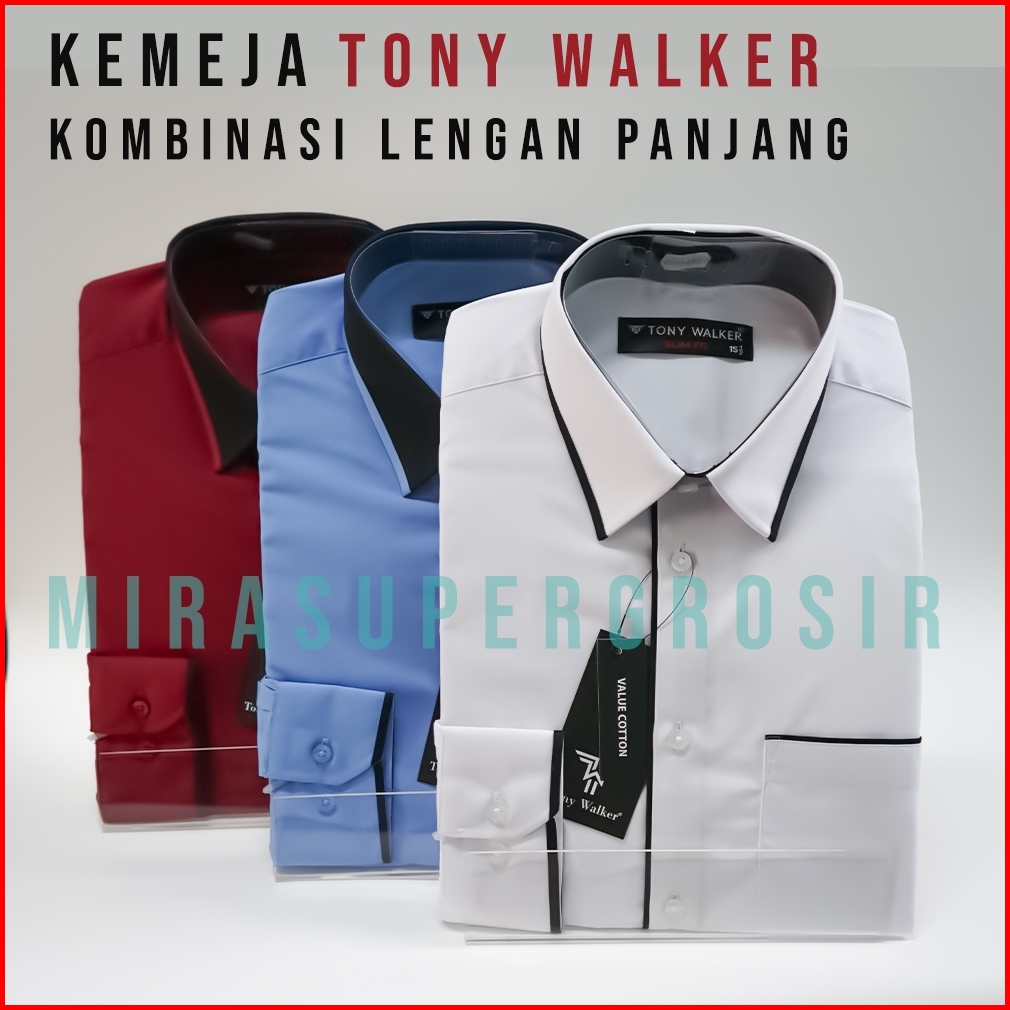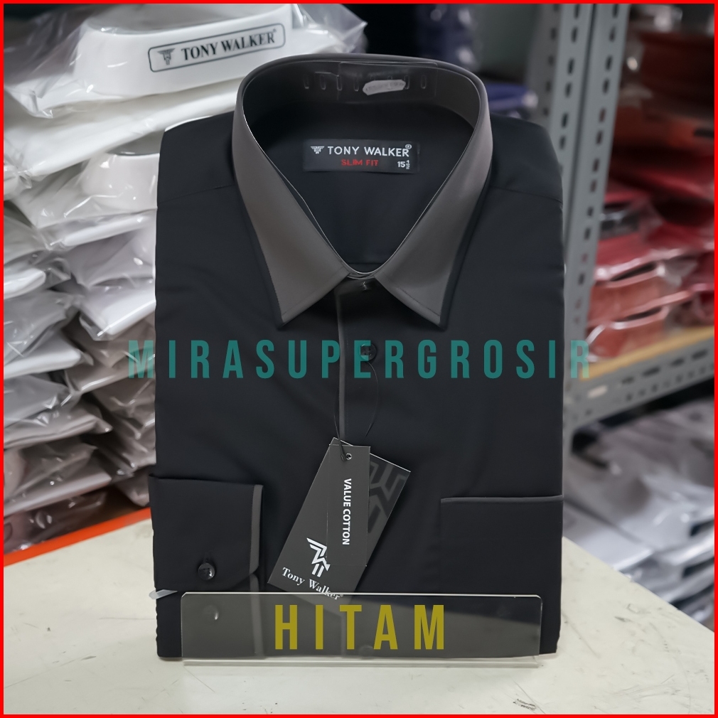 Tony Walker Kemeja Pria Slimfit Lengan Panjang Original Polos Kombinasi Baju Atasan Kerja Cowo Formal Hem Hitam Putih Ab