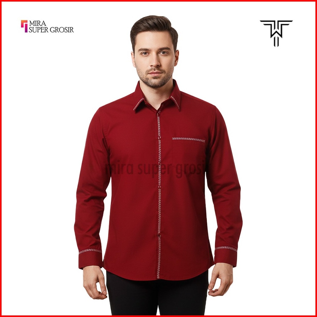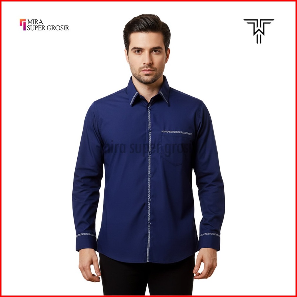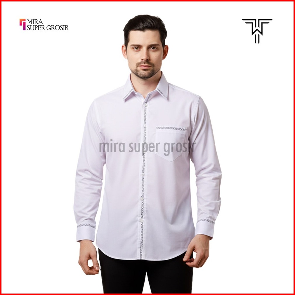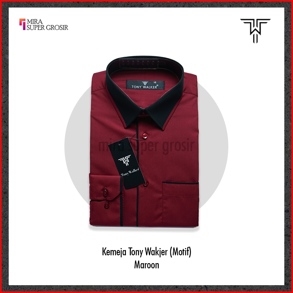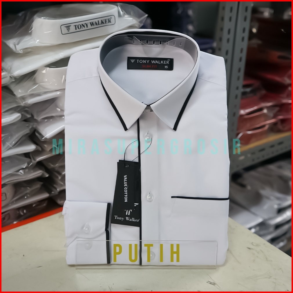 Tony Walker Kemeja Pria Slimfit Lengan Panjang Original Polos Kombinasi Baju Atasan Kerja Cowo Formal Hem Hitam Putih Ab