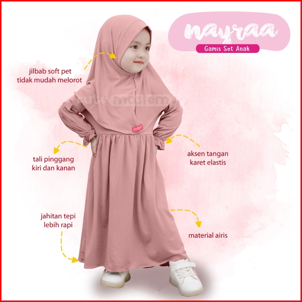 Gamis Set Jilbab Anak Cutemoslem Nayraa S-bahan Airis High Quality