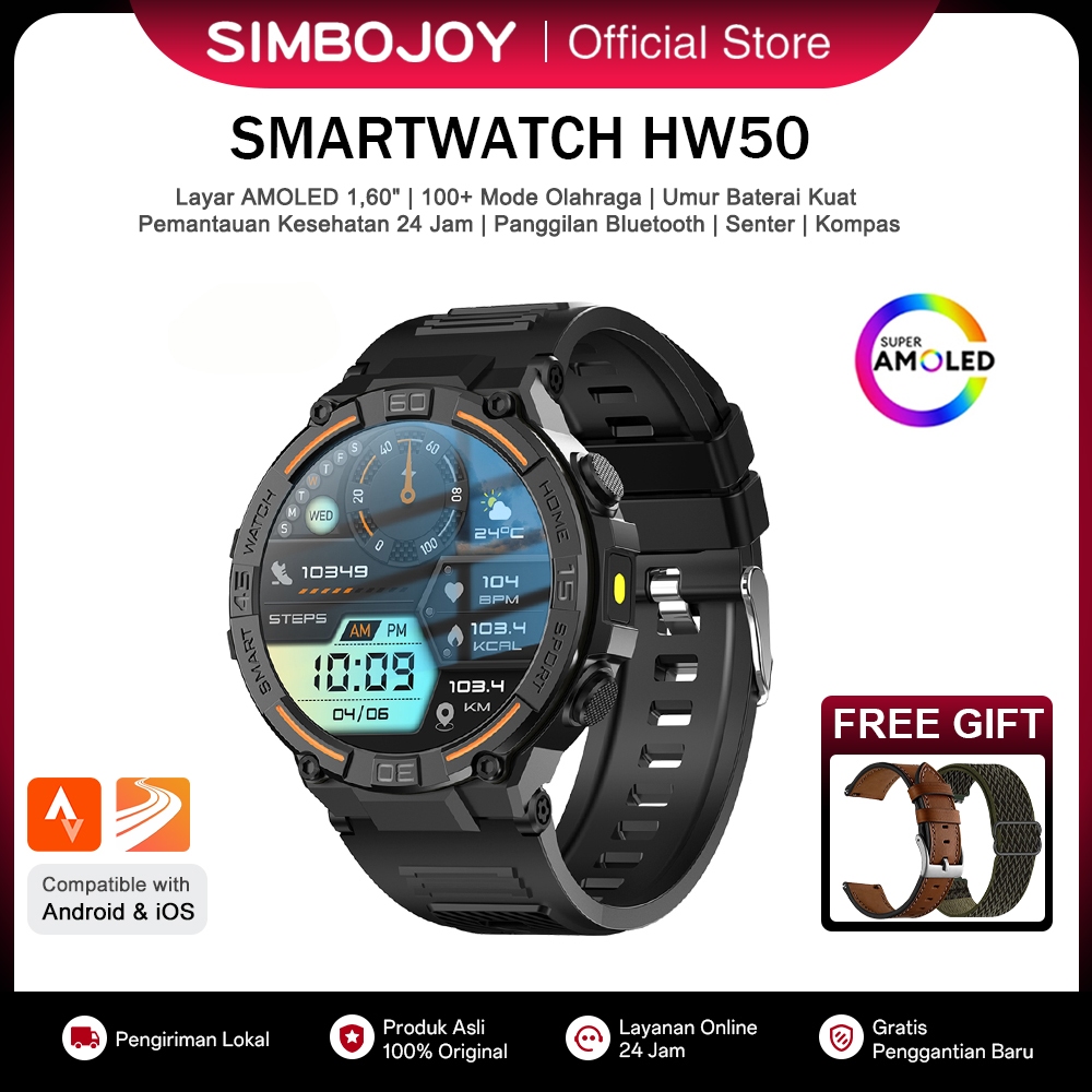 PROMO - SIMBOJOY HW50 SMARTWATCH AMOLED COVER LOCK COMPASS BLUETOOTH CALL SMART JAM TANGAN SMARTWATCH ORIGINAL