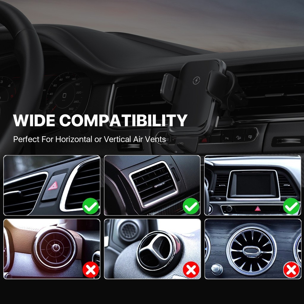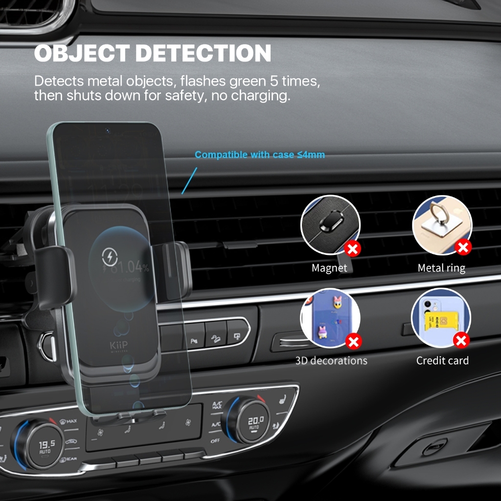 KIIP WIRELESS X6S CAR PHONE HOLDER 360 DEGREE ROTATION 15W FAST CHARGING AIR VENT MOBIL