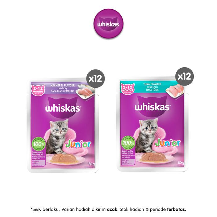 Whiskas Makanan Kucing Basah Pouch Junior rasa Tuna dan Mackerel 80 gr