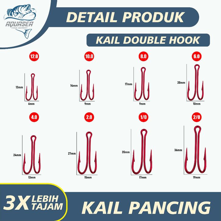 AQUASEA - Kail Pancing Double Hook Kail Isi 2pcs/pack High Carbon Steel Warna Merah senar pancing